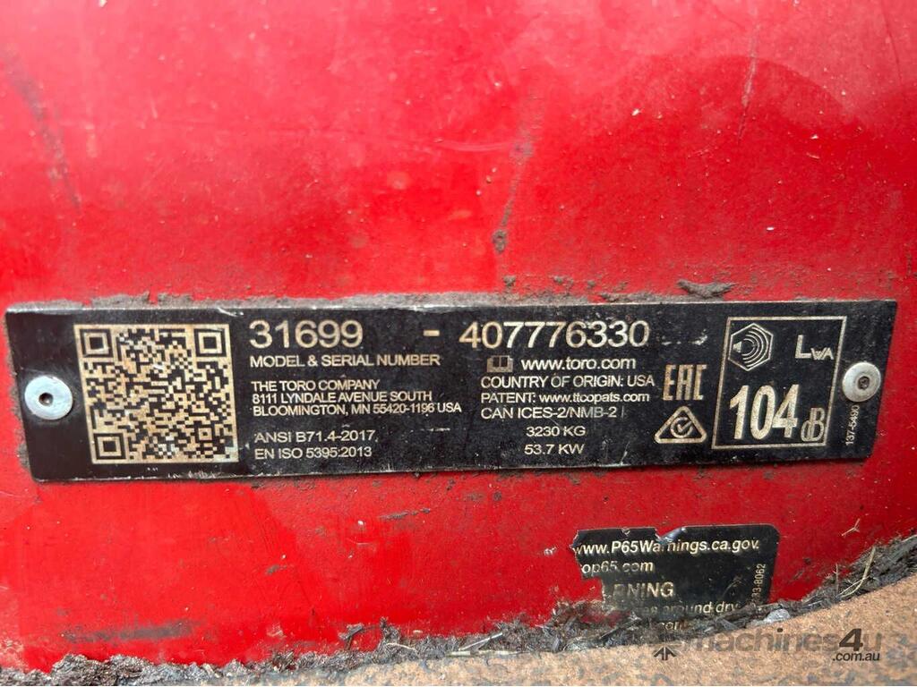 No C/P,Toro,GroundMaster 5910,Folding Wing Mower,Engine #: B9426,4 Cyl,Diesel,Odometer not visible,1384 (Hrs. Showing on Hour meter),Colour: Red,Rego. No: NP(CE51PQ), Unregistered NT,Serial No: 333,ROPS No: ,Sold with No Plates