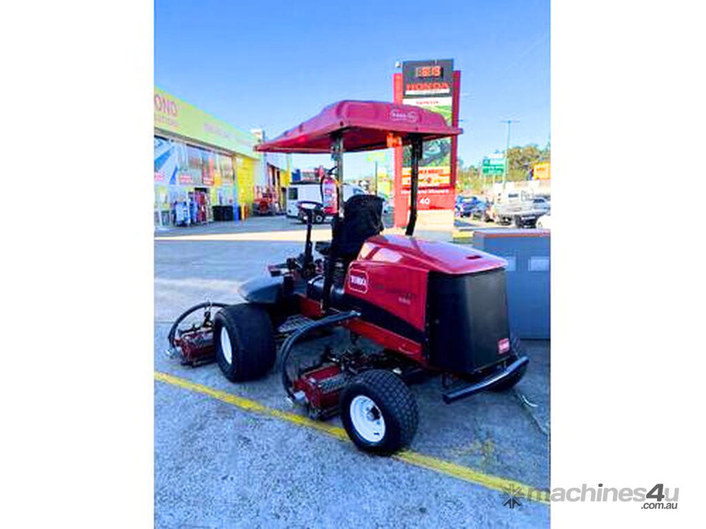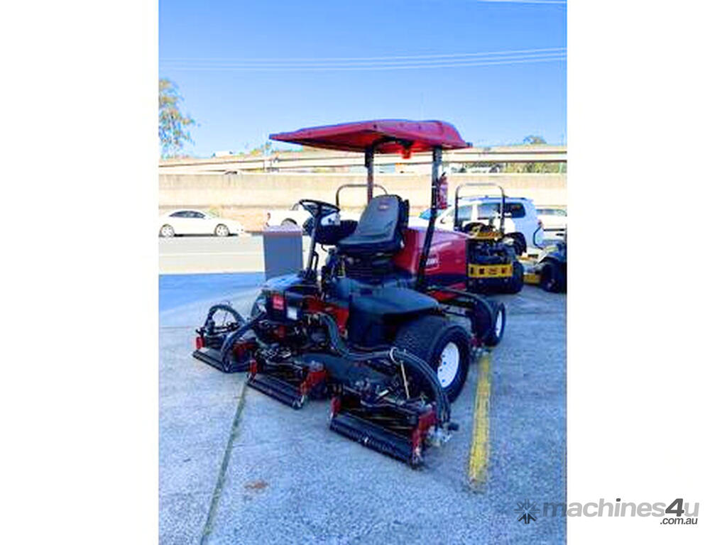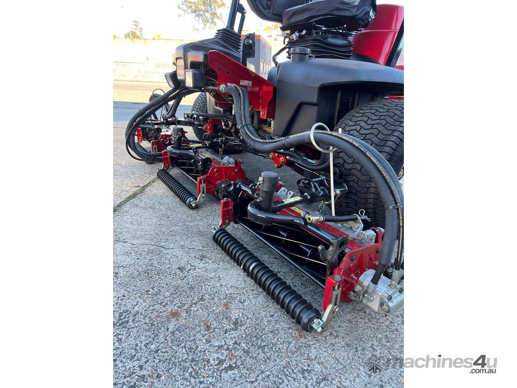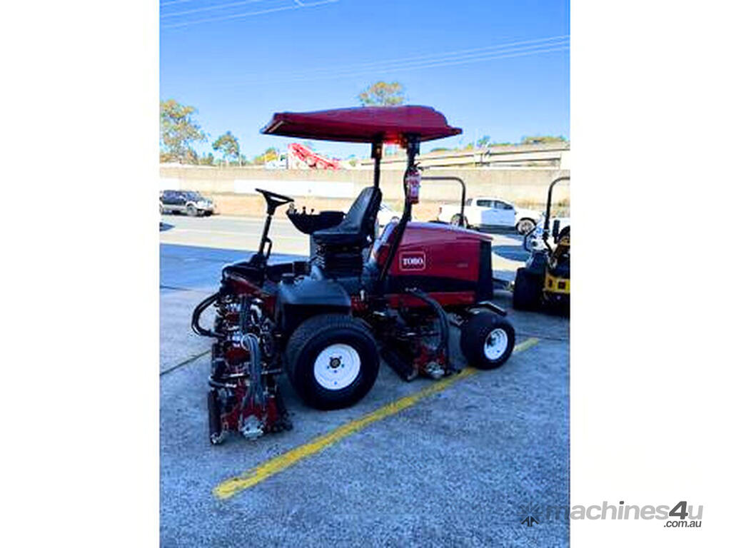 Controls: Easy-to-use, including a single foot-operated traction pedal, hand-operated key ignition switch, mechanical throttle, cutting unit raise/lower joystick, cutting unit engage switch, parking brake switch, cruise control switch, and LED headlight switch, all positioned on a convenient right-hand pivoting control console.