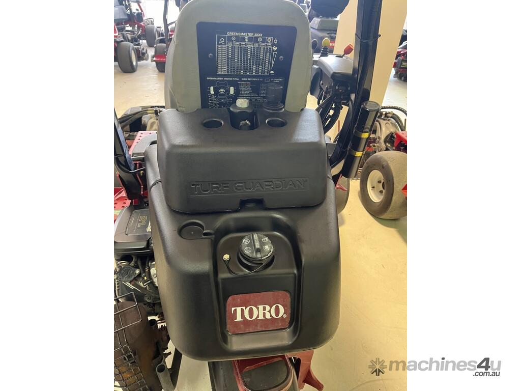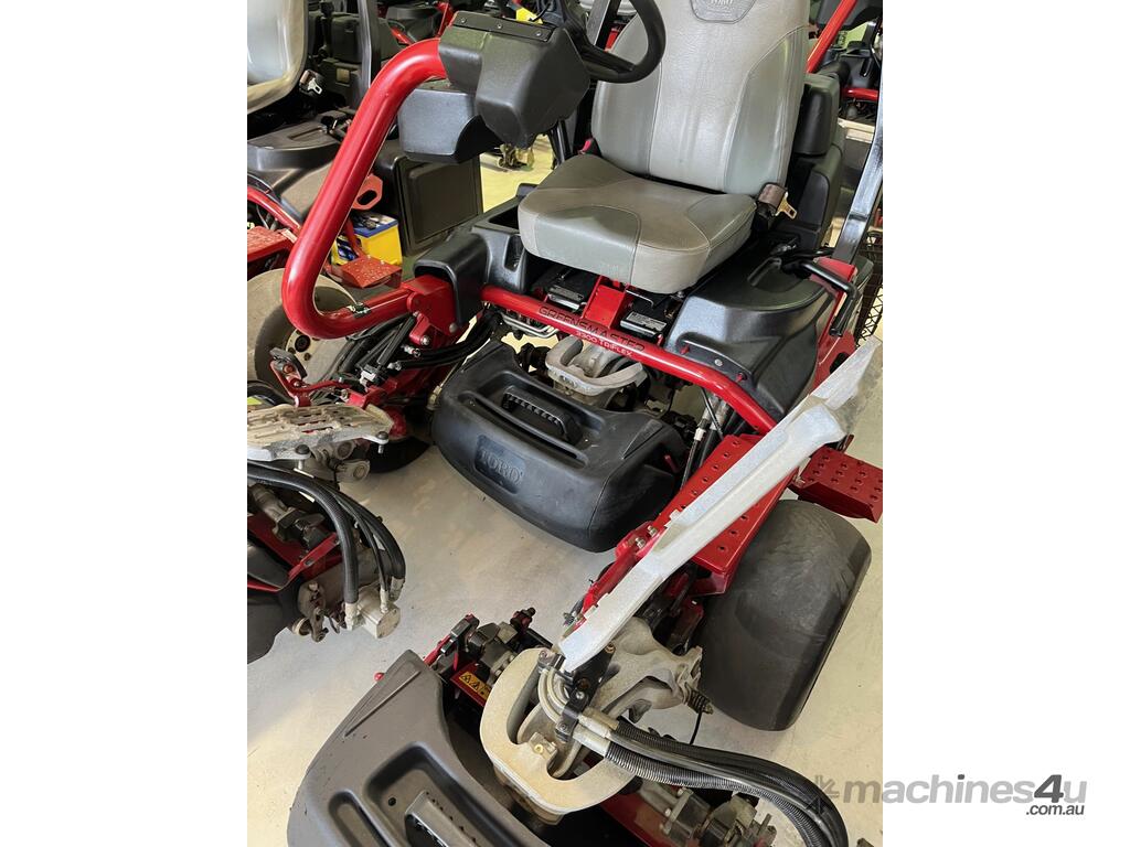 The toro triflex has flex suspension, letting the cutting heads float and move more freely improving the quality of cut over undulating surfaces. Improved clip rate, adjustable height of cut, led light kit, canopy, easy access to rear cutting head,