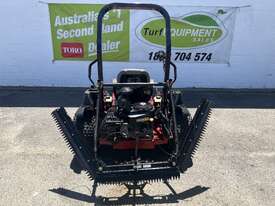 The Sand Pro® 2040Z mechanical rake is unlike anything else in the marketplace; a zero-turn mechanical groomer delivering unmatched maneuverability and productivity. This unique machine is a daily bunker rake that will reduce labor costs for both mechanical and hand raking of bunkers and infields. A “flex” raking system with the patented “lift in turn” feature enables an operator to turn tightly in bunkers without leaving unraked teardrops or tire marks.