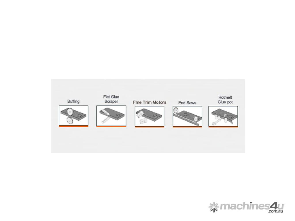 The Nickel 35 provides a quality finish with a feed speed of 10m per minute, double end saws along with flush trimming, glue scraping and buffing.