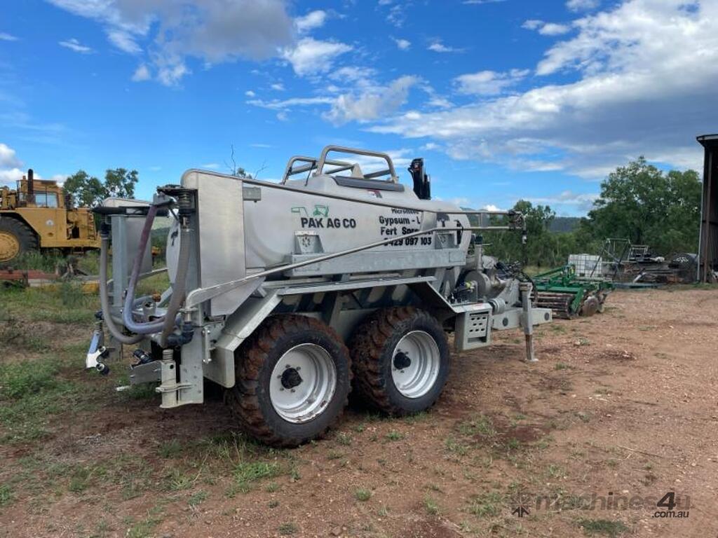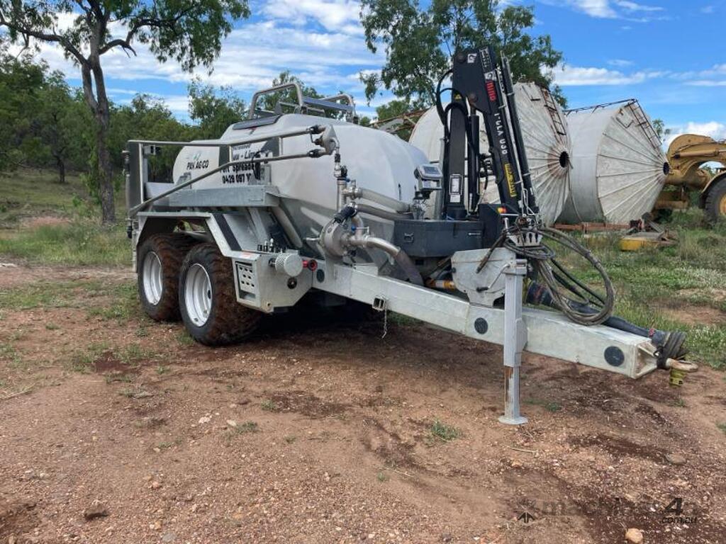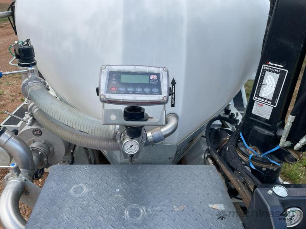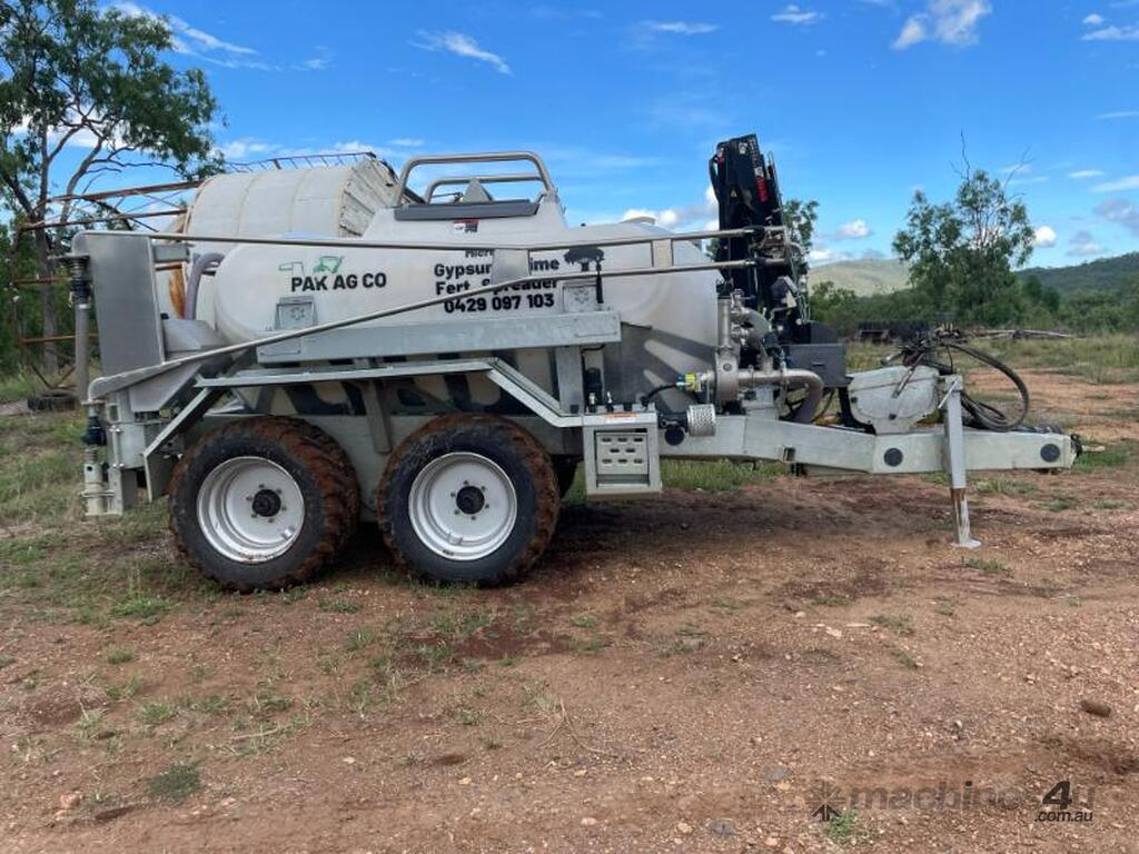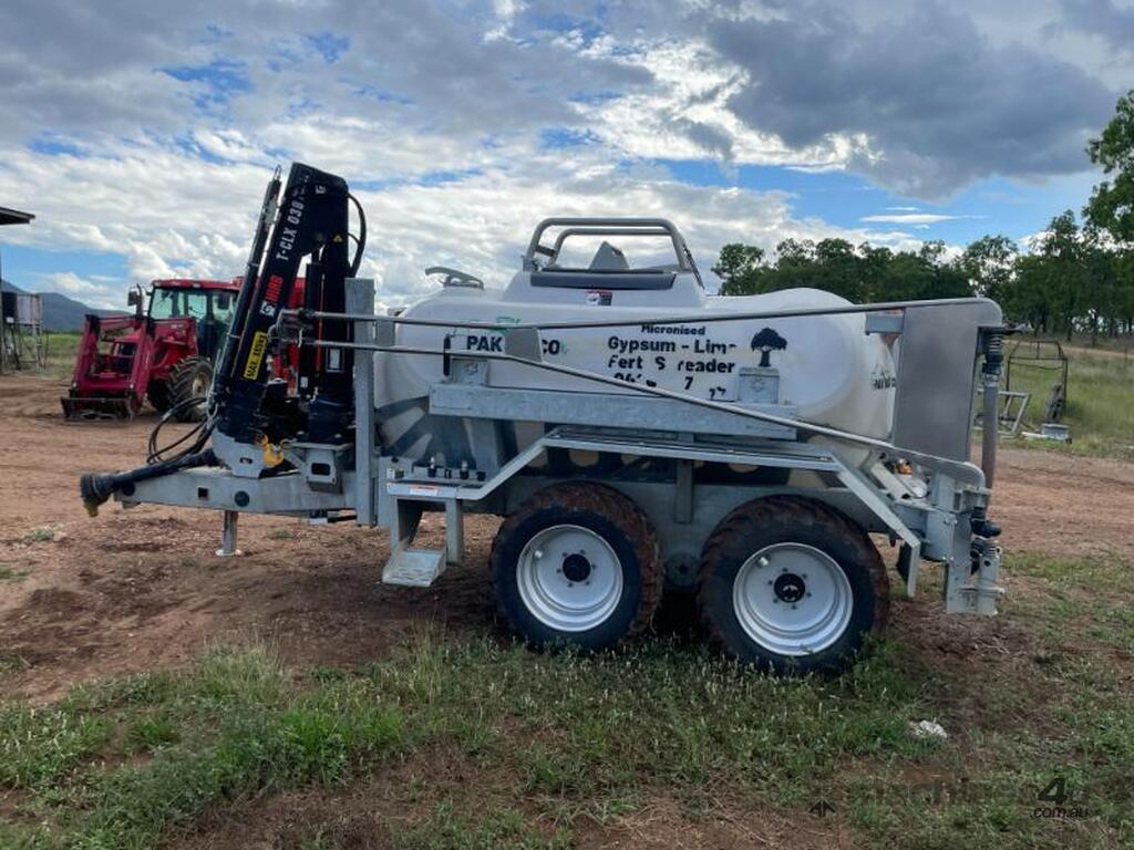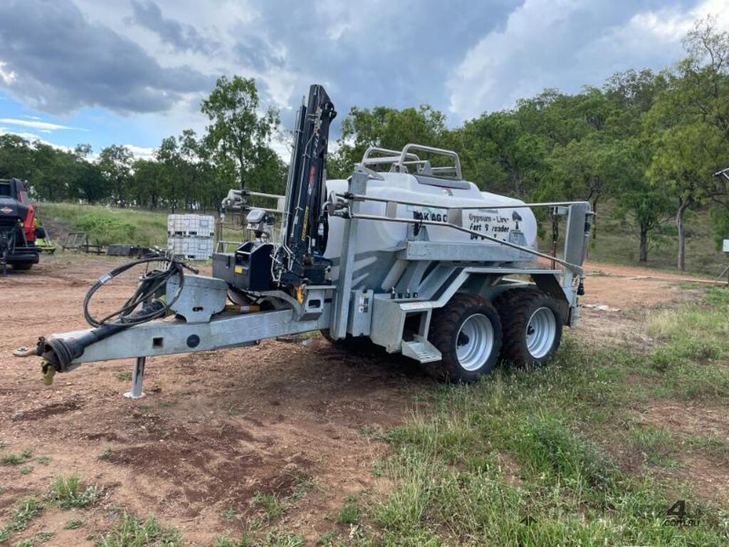 Purchased June 2024 Tow & Fert 4000 Multi with Hiab 1.2T system. Designed for broadacre and orchard applications with the ability to apply a wide range of products including fertiliser, gypsum, lime, mineral additives, and foliar or ground nutrition. Key Features • Broadacre & Orchard capable • Optional fertiliser application • Handles gypsum, lime, mineral blends and other nutrition products • 24 m broadacre spray width • Orchard setup: Adjustable width to suit 2.5 m to 6 m row spacing • Comes with 3 different spray nozzles for various products and rates • Hydraulic pump • PTO-driven agitator for faster mixing • PTO geared for smaller tractors with less hydraulic oil flow • Scales fitted for accurate rate application and loading • Toolbox attached • Haib engineered to self-load 1 tonne bulk bags • Filter: 8 mm gauze filter, positioned for easy cleaning Very tidy unit, ready to work immediately