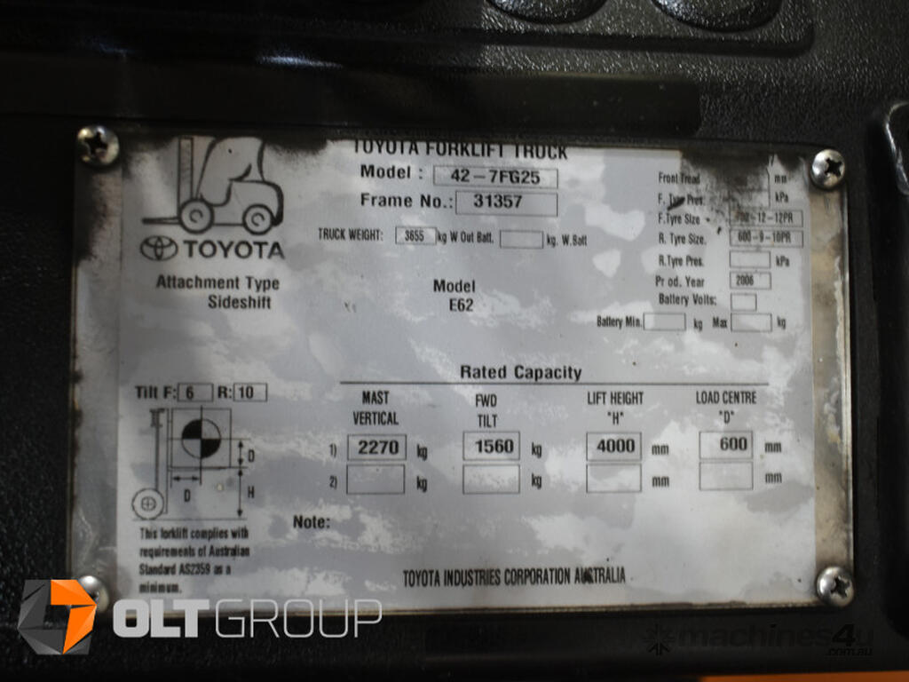 USED TOYOTA 7FG25 2.5 TONNE FORKLIFT FOR SALE: