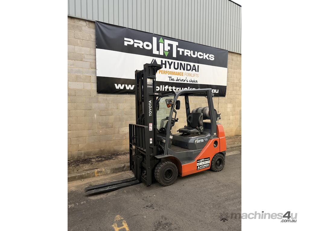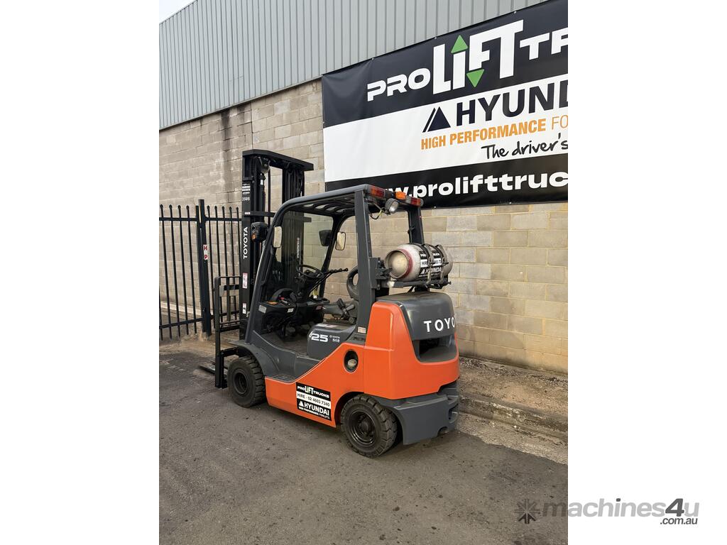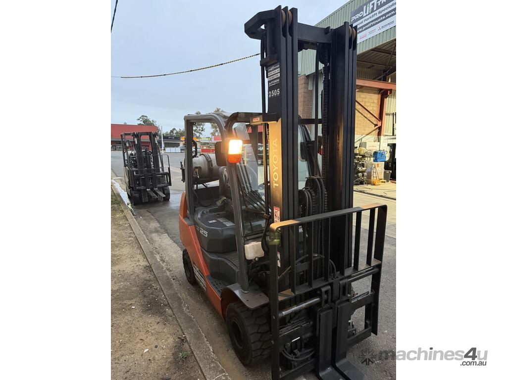 Refurbished Toyota 2500kg forklift in stock ready to work.