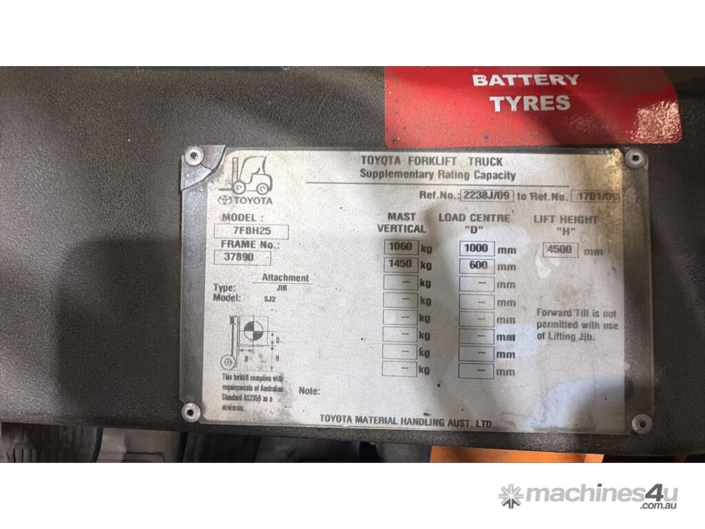 Used as is Toyota 2500kg forklift in stock ready to work.