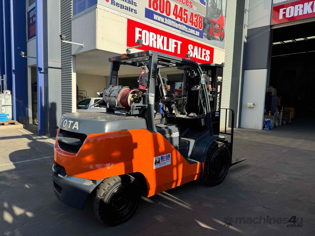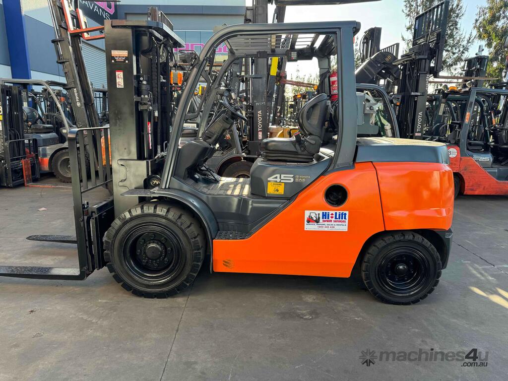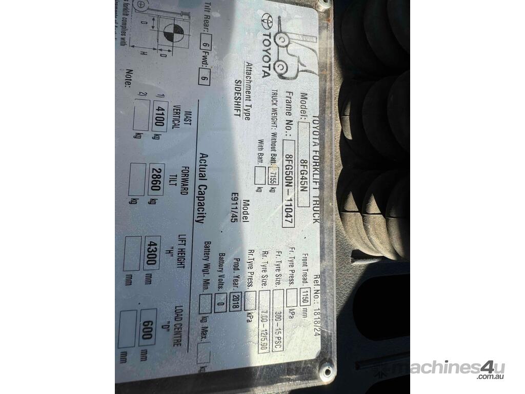 2018 Toyota forklift. 4.5 ton container mast with side shift. In excellent condition very low hours genuine hours only 990 hours. Forklift comes with a 2 year drive train warranty and completely serviced. Free local delivery. $46.500 plus GST.