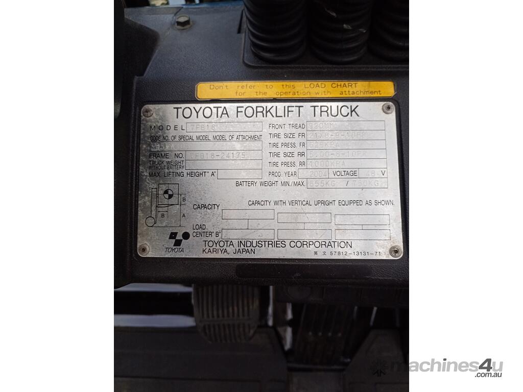The Toyota 7FB18 is a robust and reliable electric counterbalance forklift, this second hand unit is known for its quiet operation and suitability for indoor use and narrow aisles.