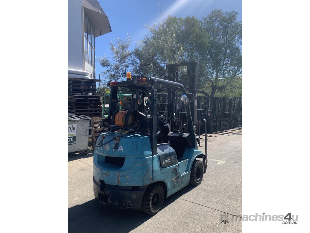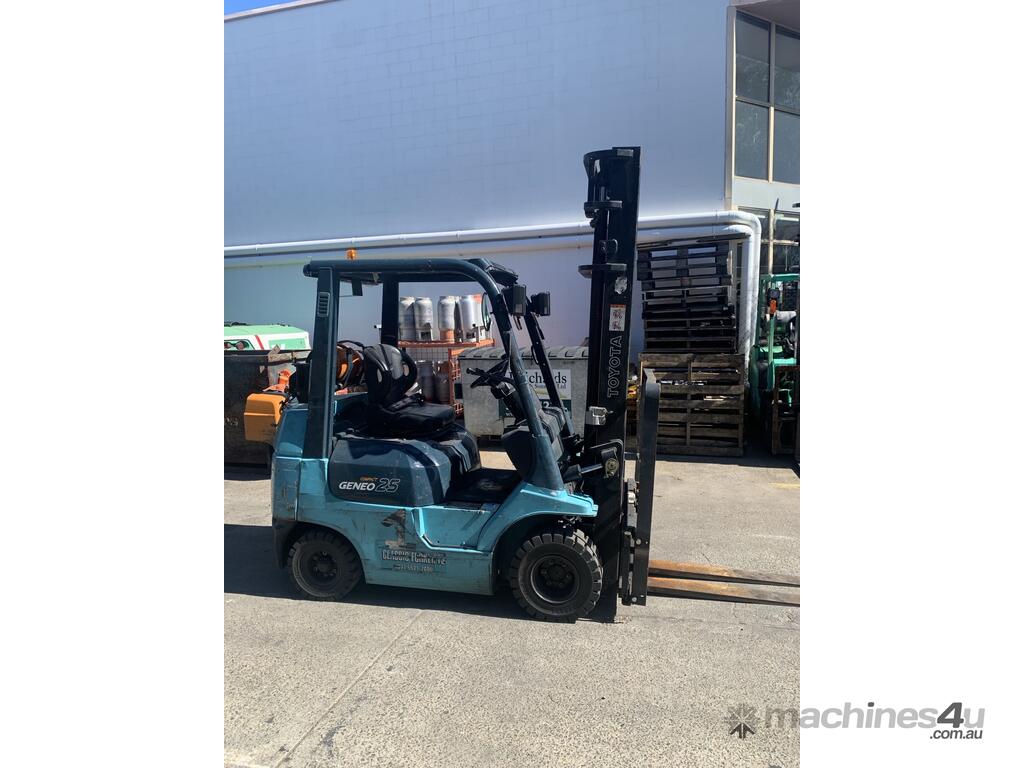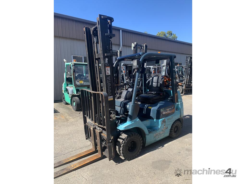 Toyota 42/7FGK25 - 2.5T Compact Forklift, LPG, side shifting, puncture proof tyres, 1070mm tynes, repainted, 6 months warranty on forklift, brand new engine – 12 months but has to be serviced within that 12 month of purchase. Forklift has 15,494 hours but the engine is 0hr as brand new.