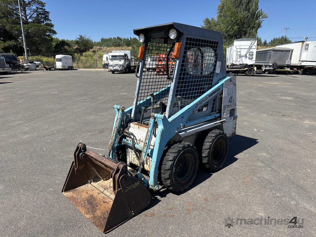 No C/P,Toyota,4SDK4,Skid Steer (Mini Loader),Engine #: C8339,3 Cyl,Diesel,Odometer not visible,1435 (Hrs. Showing on Hour meter),Colour: Blue,Unregistered,Serial No: 4SDK411377,Sold with No Plates,WOVR Status: WOVR N/A,Incident Type: Impact,Key No: 22