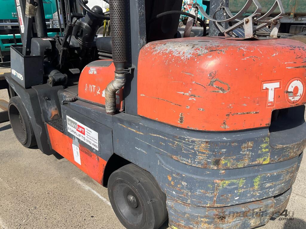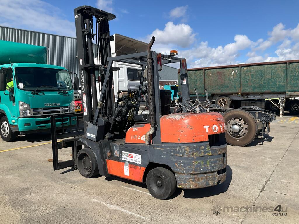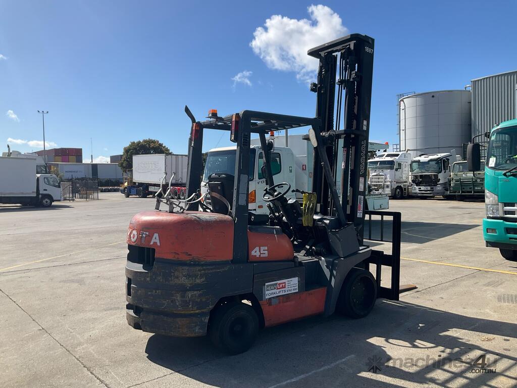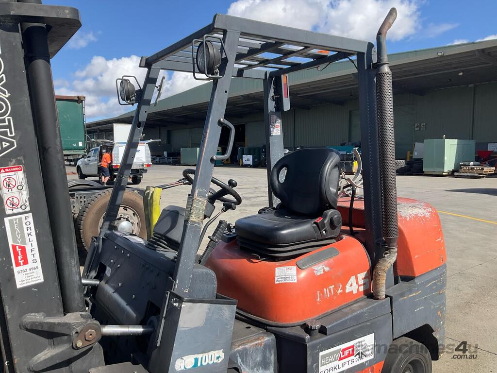 No C/P,Toyota,52-6FGCU45,Counter Balance Forklift,4 Cyl,Petrol & LPG (Dual),Odometer not visible,14910 (Hrs. Showing on Hour meter),Colour: Orange,Rego. No: NP(285488), Unregistered VIC,Serial No: 61320,Sold with No Plates