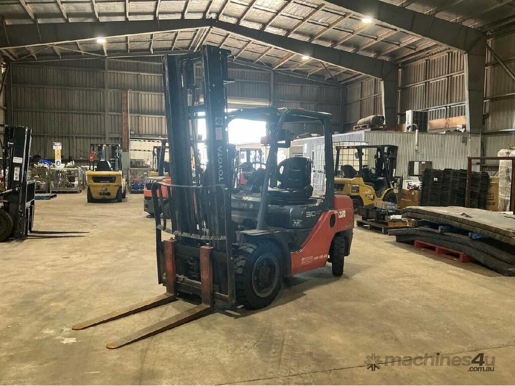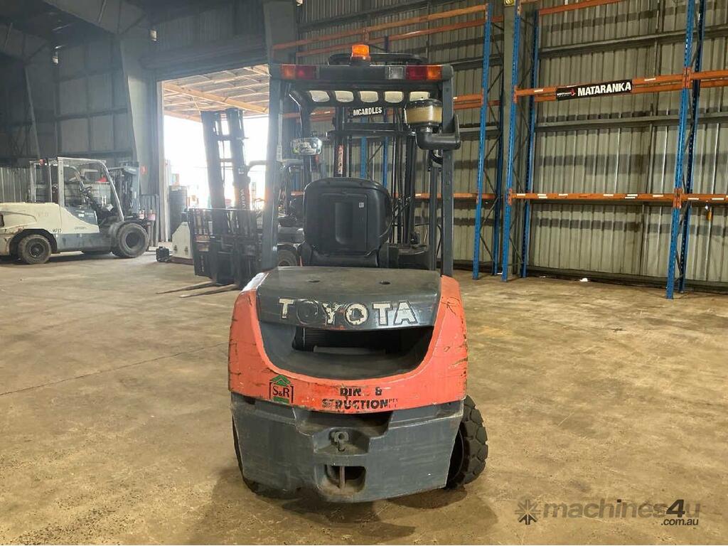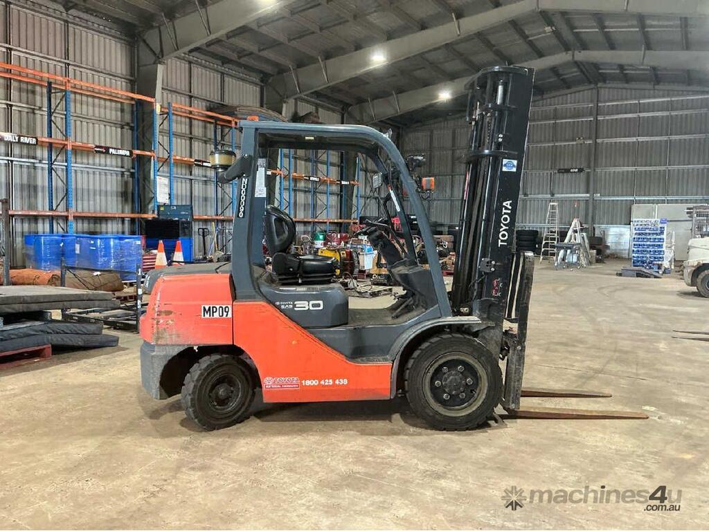 No C/P,Toyota,62-8FD30,Forklift (Counterbalanced),4 Cyl,Diesel,Odometer not visible,4210 (Hrs. Showing on Hour meter),Colour: Orange,Unregistered,Serial No: 608FDJ35-62874,Sold with No Plates