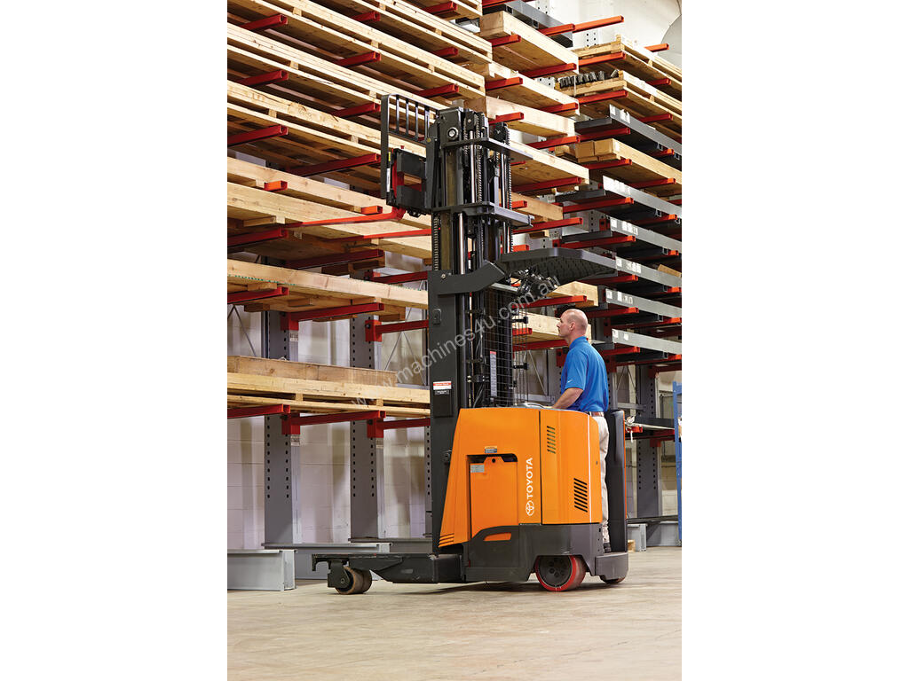 The Toyota 7000 Series reach forklifts are engineered to get more done with less. They deliver Eco-Performance through the ACR System™, which provides quick acceleration and smoother directional changes - allowing operators to stay productive.