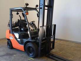 The Toyota 8FG25 offers a 2.5 tonne lifting capacity and a 4500mm clear view mast for smooth handling & control.