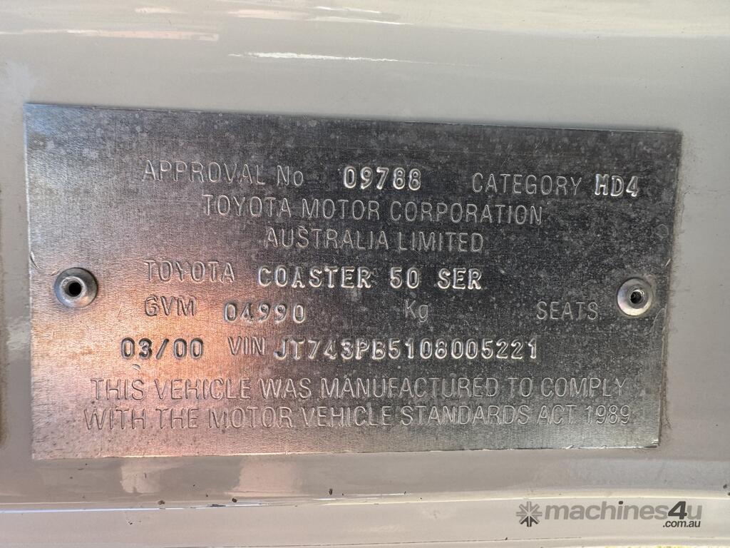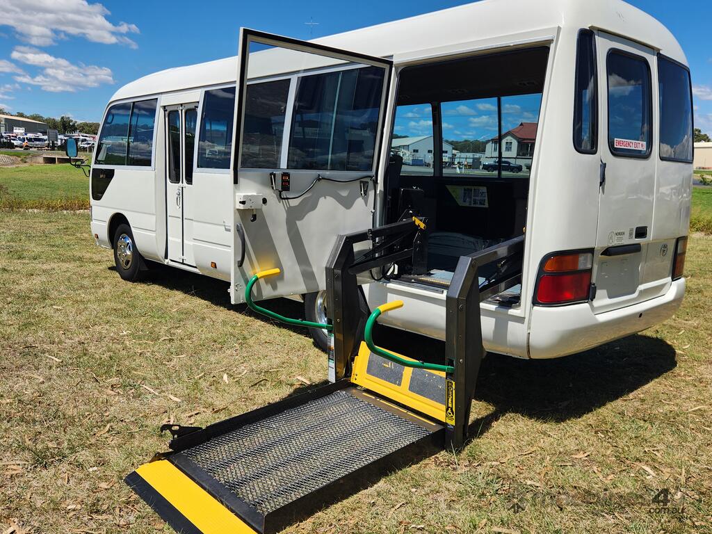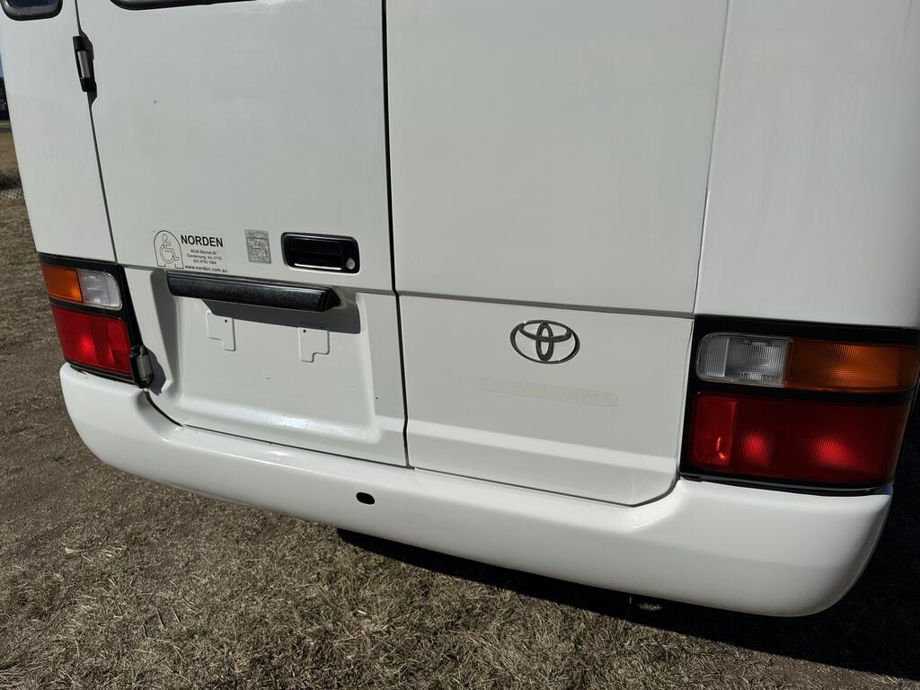 2000 Toyota Coaster 50 Series Deluxe 4.2 Litre 1HZ 4x2 Bus. Rear Side Door with Wheelchair Lift. Ideal Motorhome Conversion.
