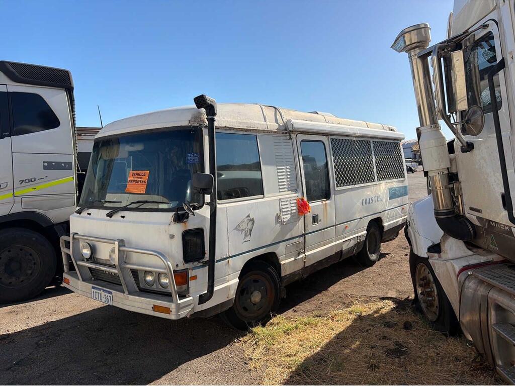 No C/P,Toyota,Coaster,Bus,leaf,Odometer not visible,Hourmeter not visible,Colour: White,Rego. No: 1CTU367 WA,Sold with No Plates