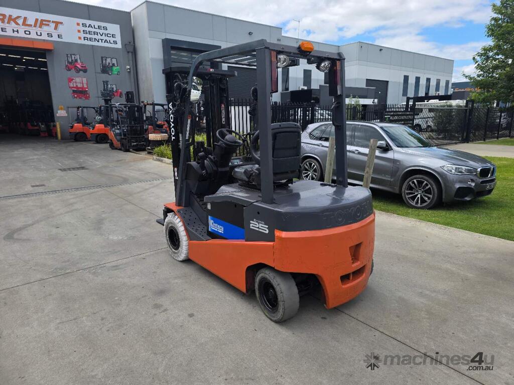 Used Toyota 2.5T 4-Wheel Electric Forklift Container Mast with New Battery