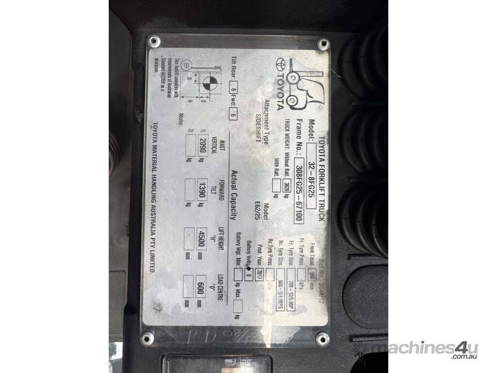 Used Toyota Forklift 2.5T with Tyne Positioners