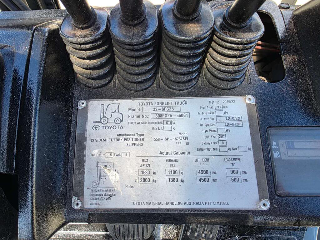 Used Toyota Forklift 2.5T with Tyne Positioners