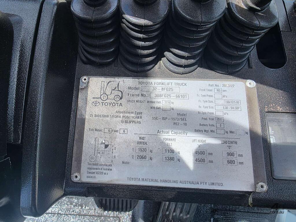 Used Toyota Forklift 2.5T with Tyne Positioners
