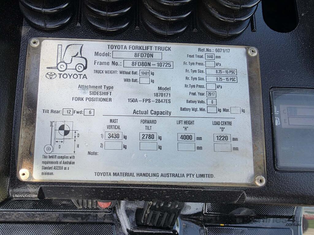 Used Toyota 7T Diesel Forklift with Tyne Positioners