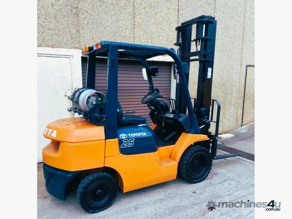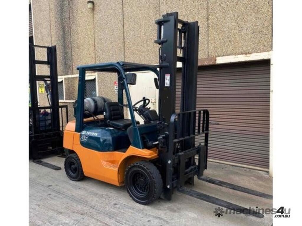 Toyota Forklift with 4500MM lift height, has new motor with only 30 hours on it, freshly painted, side shift with 1070MM forks, all safety lighting and roof inserts, solid tyres.