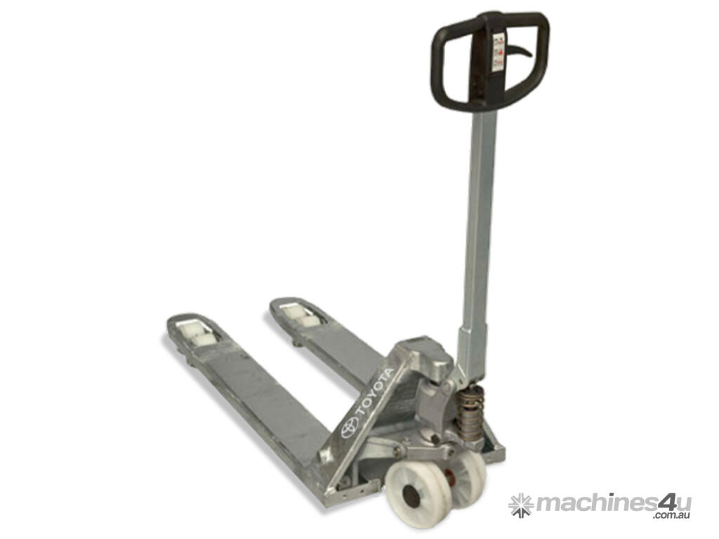 The Toyota Lifter galvanized hand pallet jack is an economical alternative to the no-compromise Toyota Stainless Lifter and is ideal for semi-wet environments.