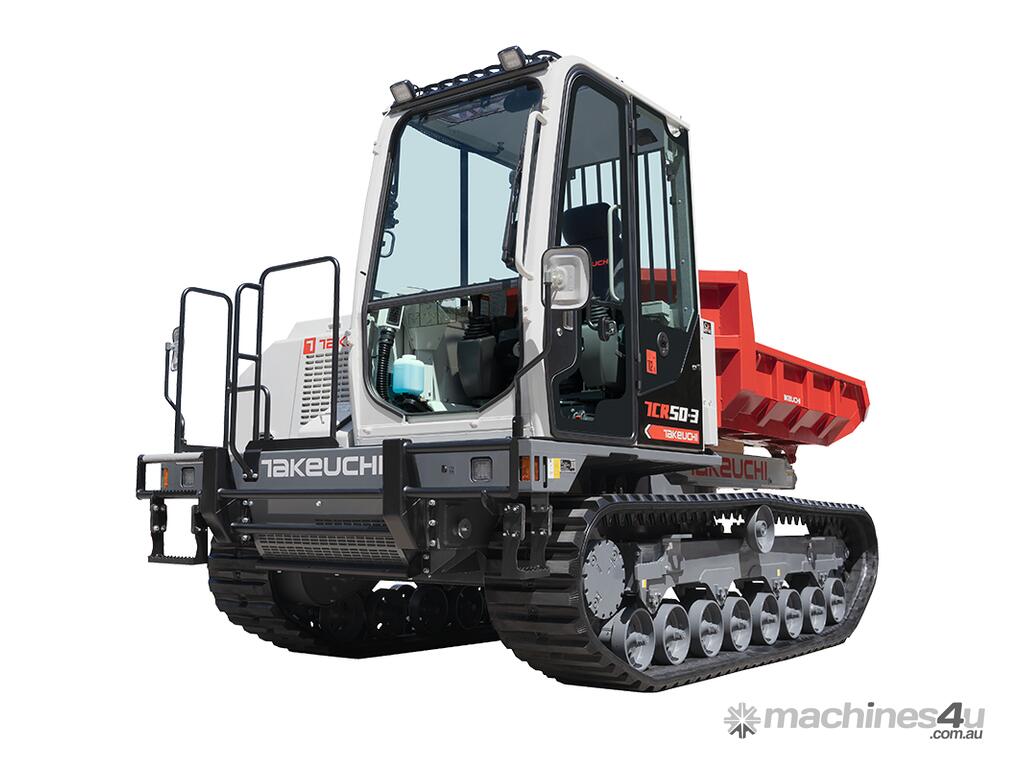 The TCR50-3 crawler dumper offers greater functionality, performance, comfort and serviceability. With an ample 65 degree dumping angle and 3,700 kg maximum loading weight, operator always get a lot of soil discharged with just a single dumping stroke. 180 degree turning dump reduces the need for unskilled operator to continually reposition the machine and it prevents early wear of rubber tracks.