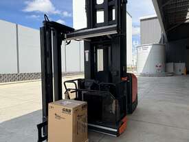 The Toyota Vector VCE150A is a powerful man-up forklift designed for pallet handling in very narrow aisle environments. Its clear open front provides safe, efficient order picking in high racking systems, while the articulated steering system ensures excellent manoeuvrability both inside and outside the aisle.