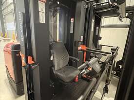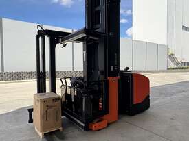 The Toyota Vector VCE150A is a powerful man-up forklift designed for pallet handling in very narrow aisle environments. Its clear open front provides safe, efficient order picking in high racking systems, while the articulated steering system ensures excellent manoeuvrability both inside and outside the aisle.
