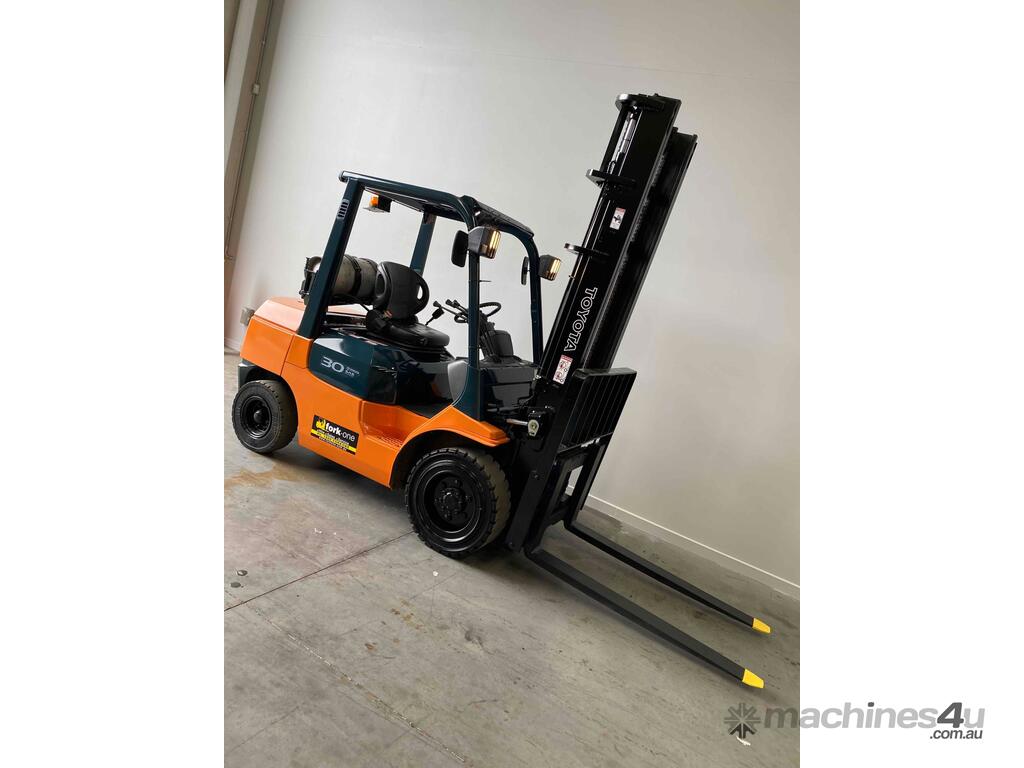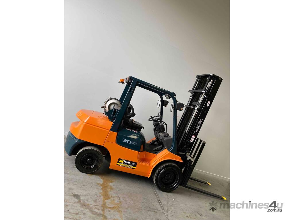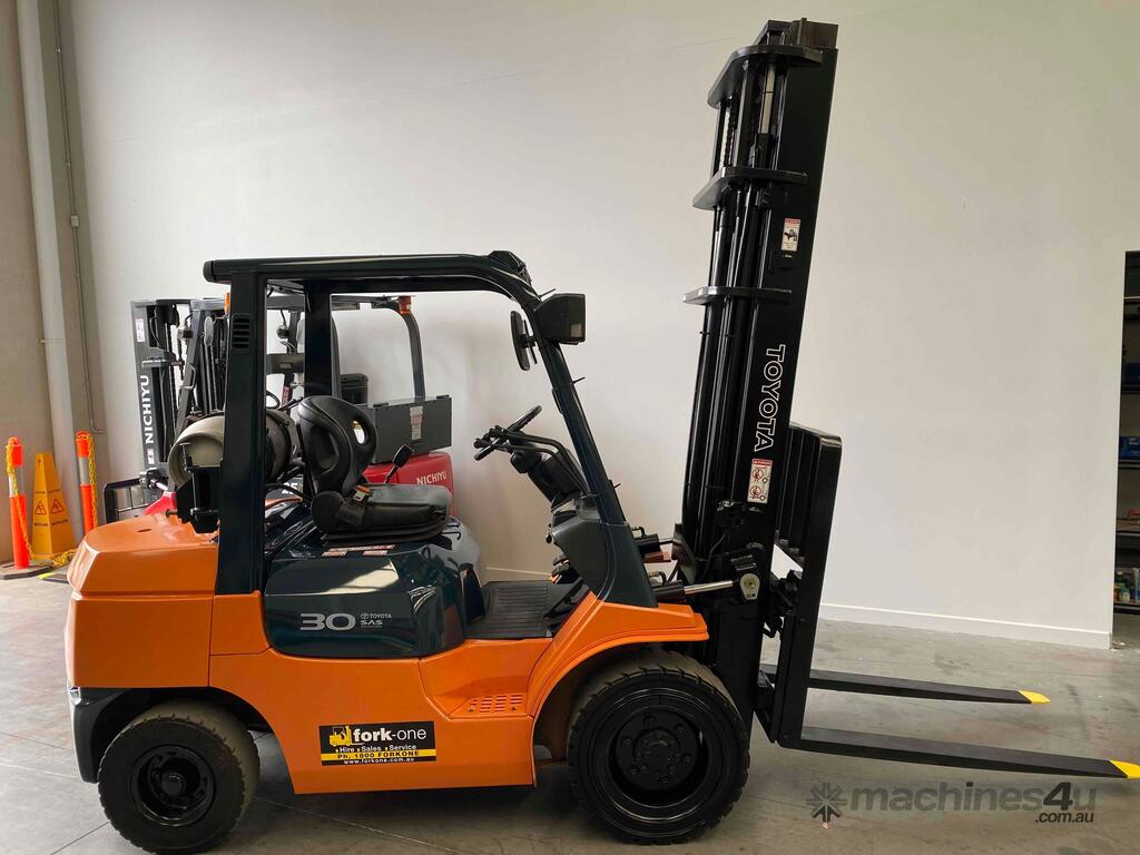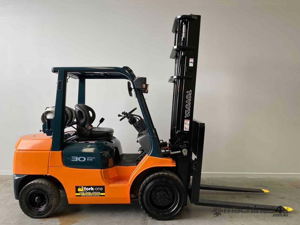 Toyota forklift 3.5 tonne with solid tyres,sideshift and fork positioner.This unit has been refurbished and is in excellent condition and mechanically A1.Approx 9000hrs and sold with 3 months warranty.