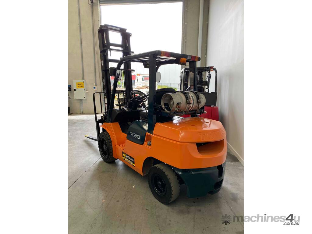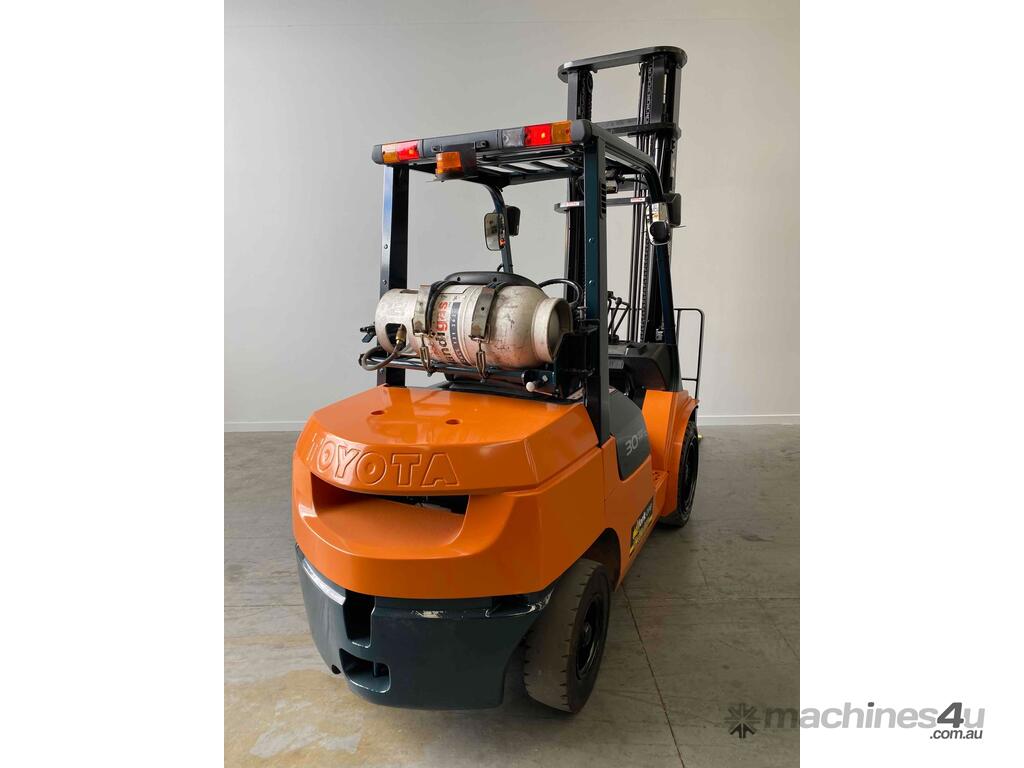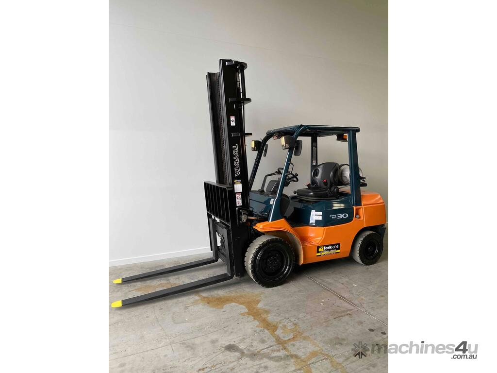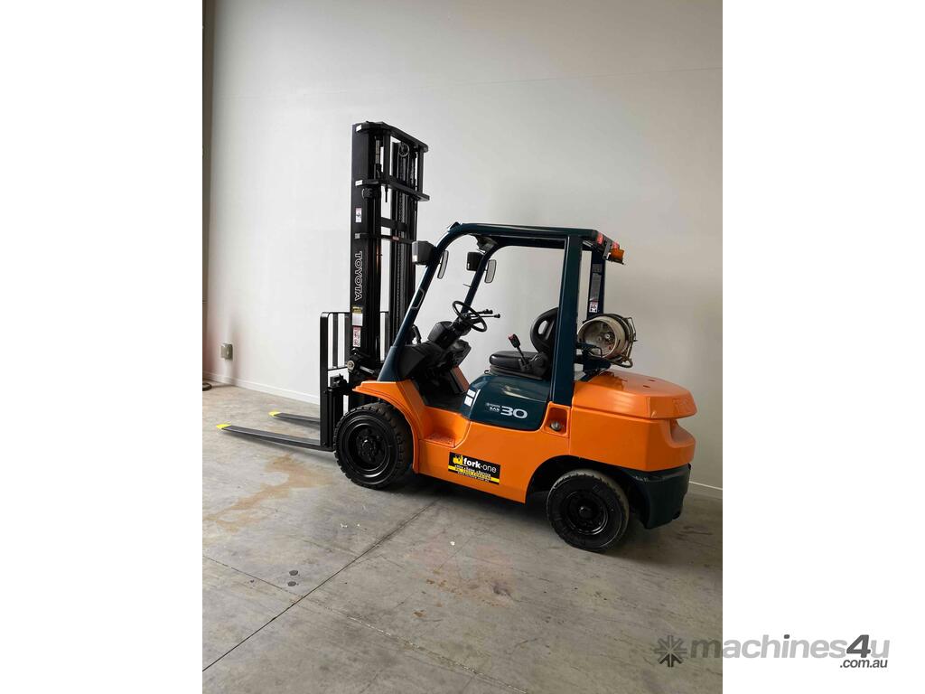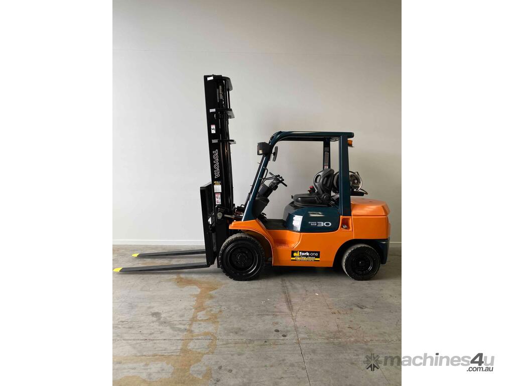 Toyota forklift 3.5 tonne with solid tyres,sideshift and fork positioner.This unit has been refurbished and is in excellent condition and mechanically A1.Approx 9000hrs and sold with 3 months warranty.