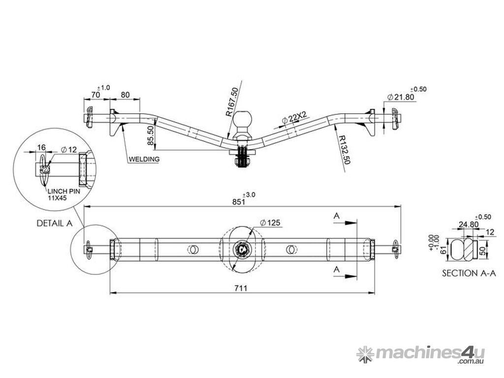 Tractor Anti Twist Draw Bar / Tow Bar (Cat. 1).