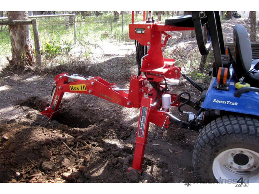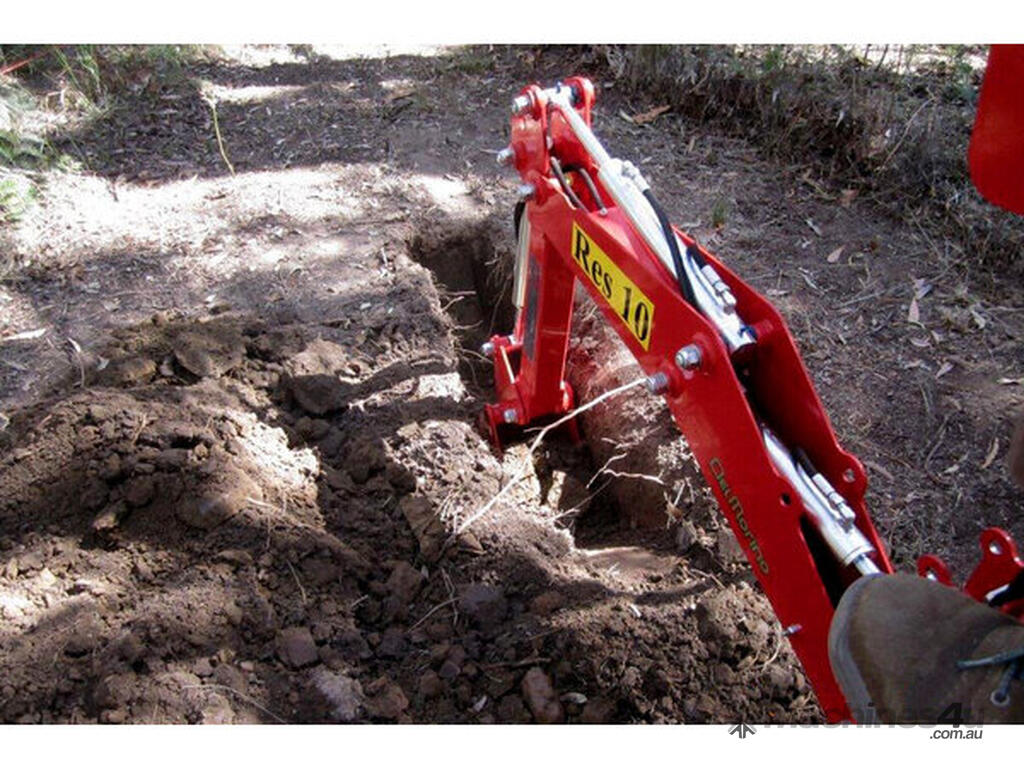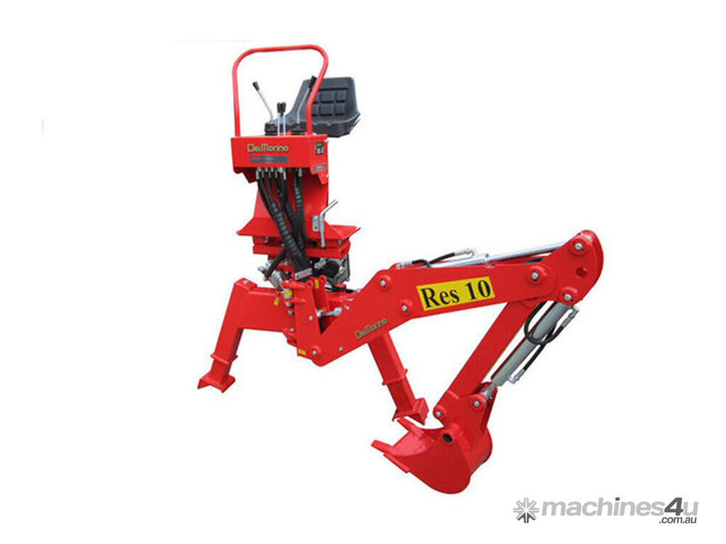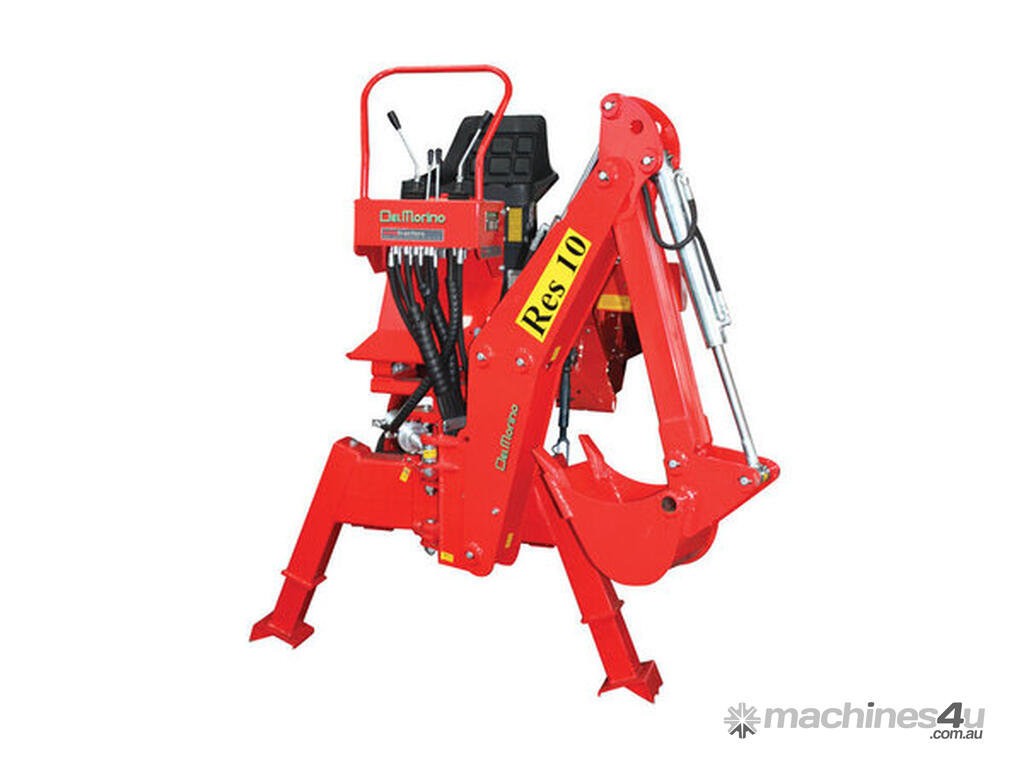 Tractor backhoe, suits tractors 18-30hp. 2 year warranty. 1200kg tearing power at tooth, 220cm arm length, Cat 1. In the RES10, Del Morino have been able to engineer a very light and fully-functional backhoe that is stable and transports safely on your tractors linkage.