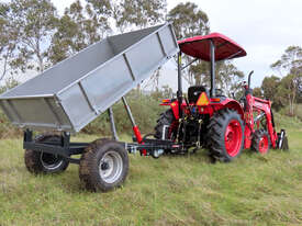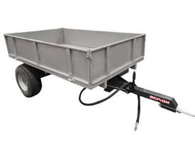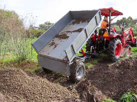 The AGMAX 1-ton hydraulic tipping trailer is used for transporting and unloading bulk materials, including soil, gravel, manure, crops, sand, or rubble. The trailers bed tips via a hydraulic lift to offload contents quickly and efficiently. Easily attached to your tractor, the AGMAX tipping trailer can transport a payload of 1 ton.