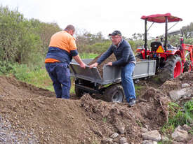 For example, move freshly cut firewood across your paddock, a ton at a time then, with a pull of a lever, unload it at your woodshed.