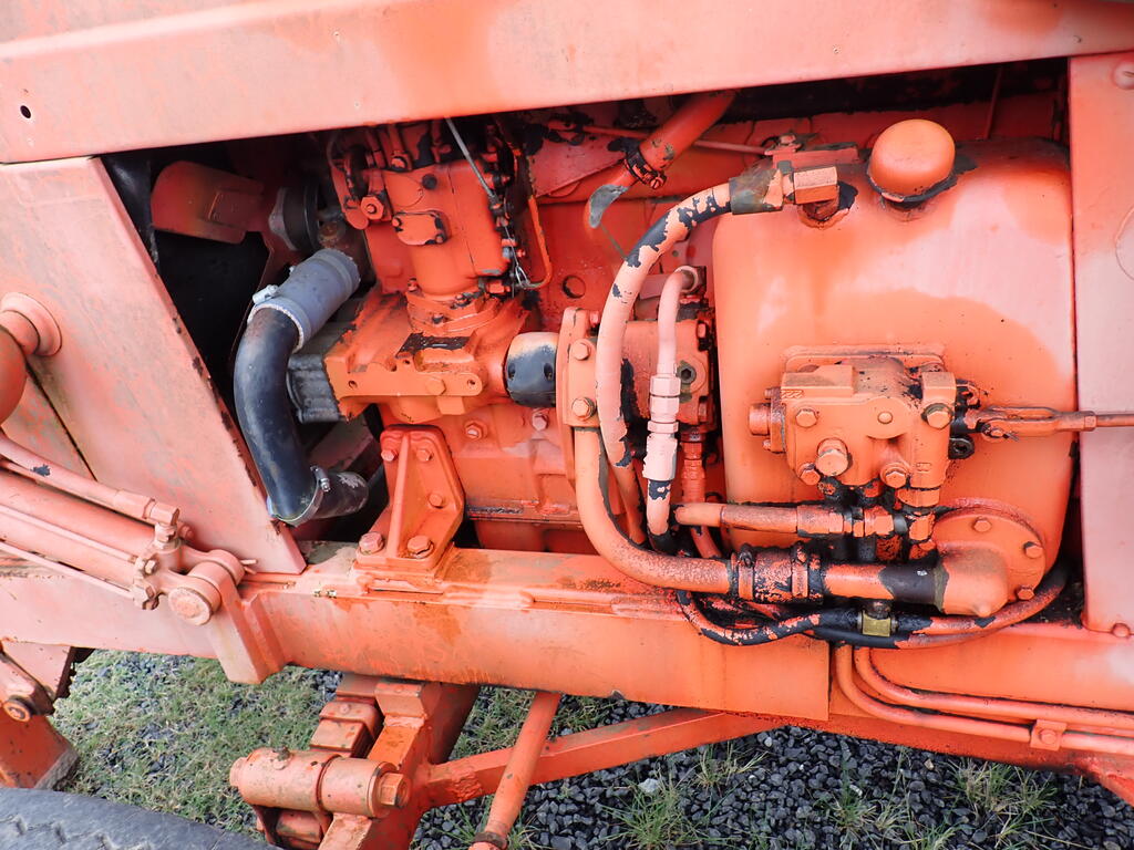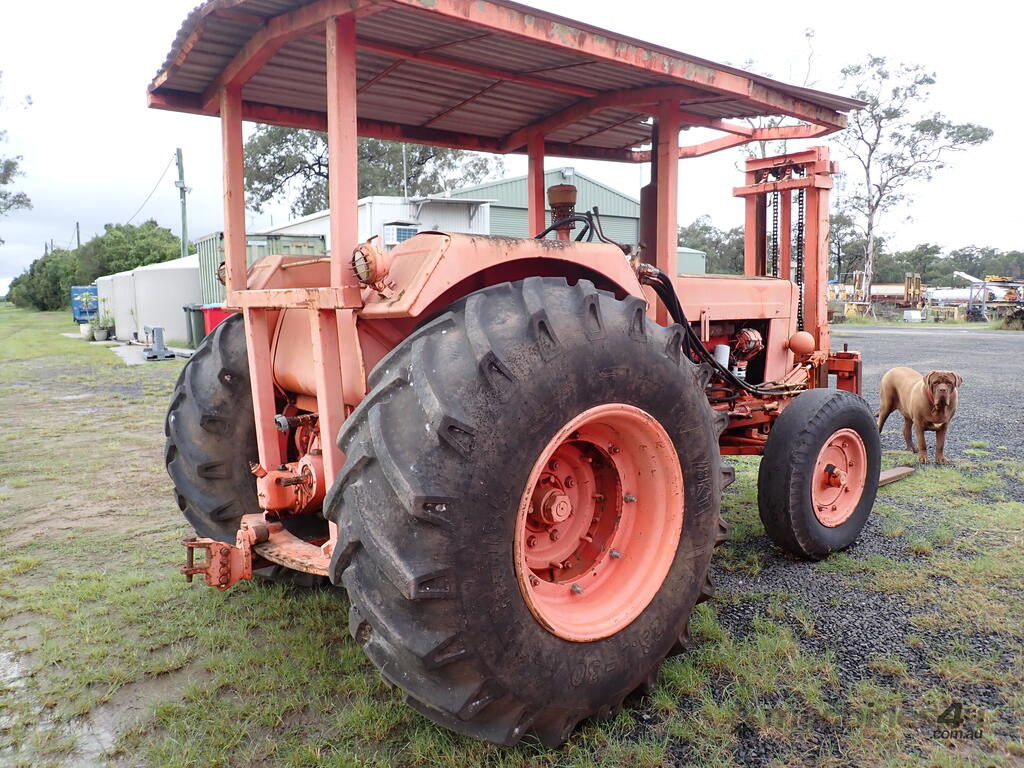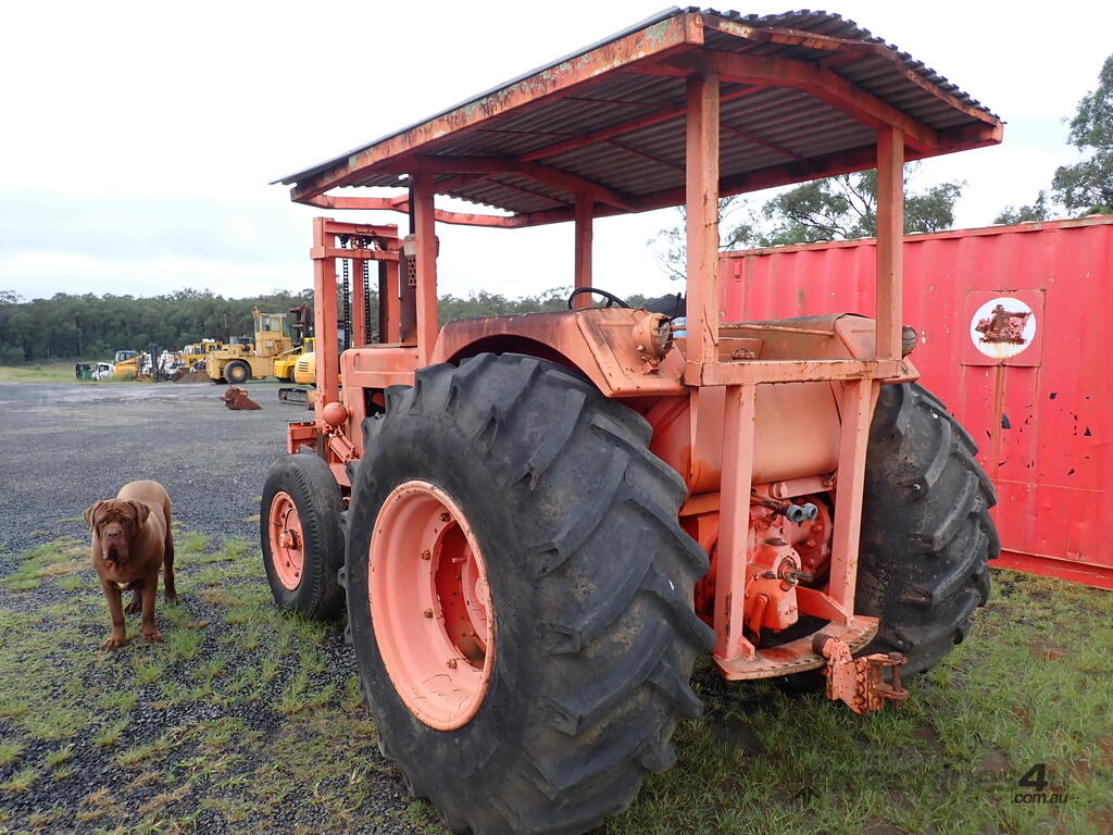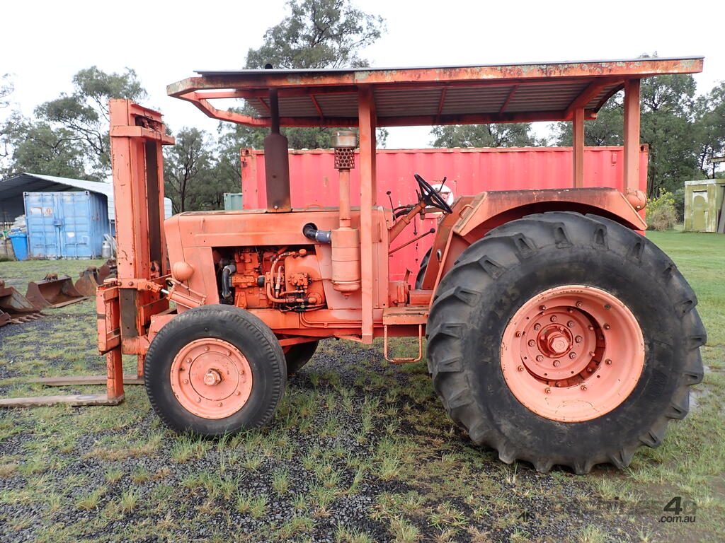 Tractor forklift, Chamberlain C6100 with Dalmore Engineering front mounted forklift mast, Perkins 6354 diesel 120 HP, manual trans, rear PTO & remotes, swinging drawbar, power steering, 10.00x20 steer tyres and 23.1x30 drive tyres, full length canopy, starts and drives and lifts, brakes need attention from lack of use.