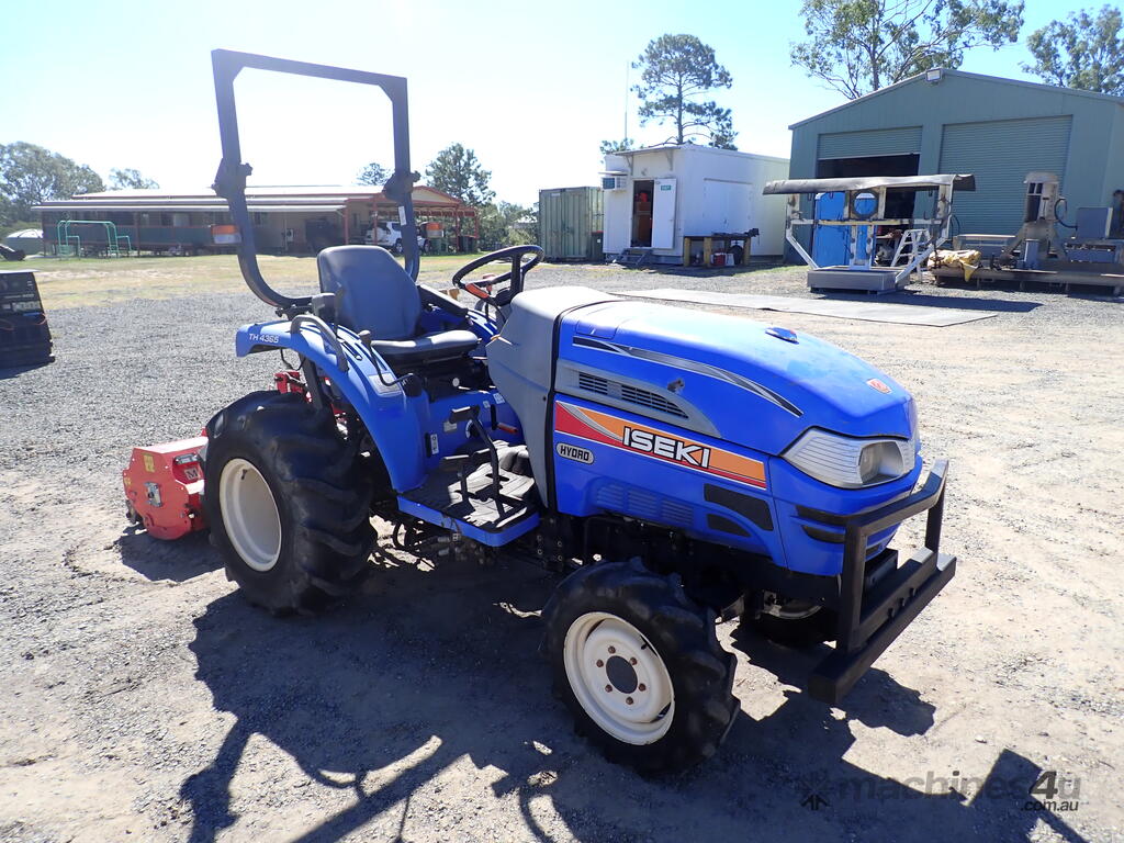 Tractor Iseki TH4365 Hydro, 2016 build, 36 HP, FWA, ROPS bar, power steering, extra hydraulics for FEL or similar, 2 speed independent PTO, 1540 hours, with Delmorino 106M flail mulcher/mower with hammer blades, 1.06m wide cut, very handy unit, starts and works well.