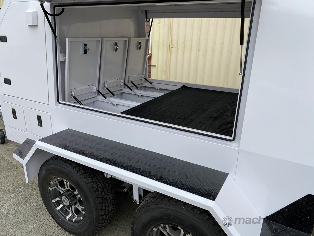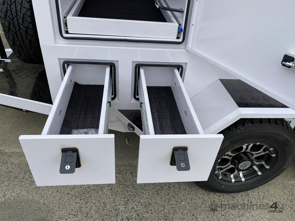 • Under trailer 80 litre water tank and draw bar mounted tap