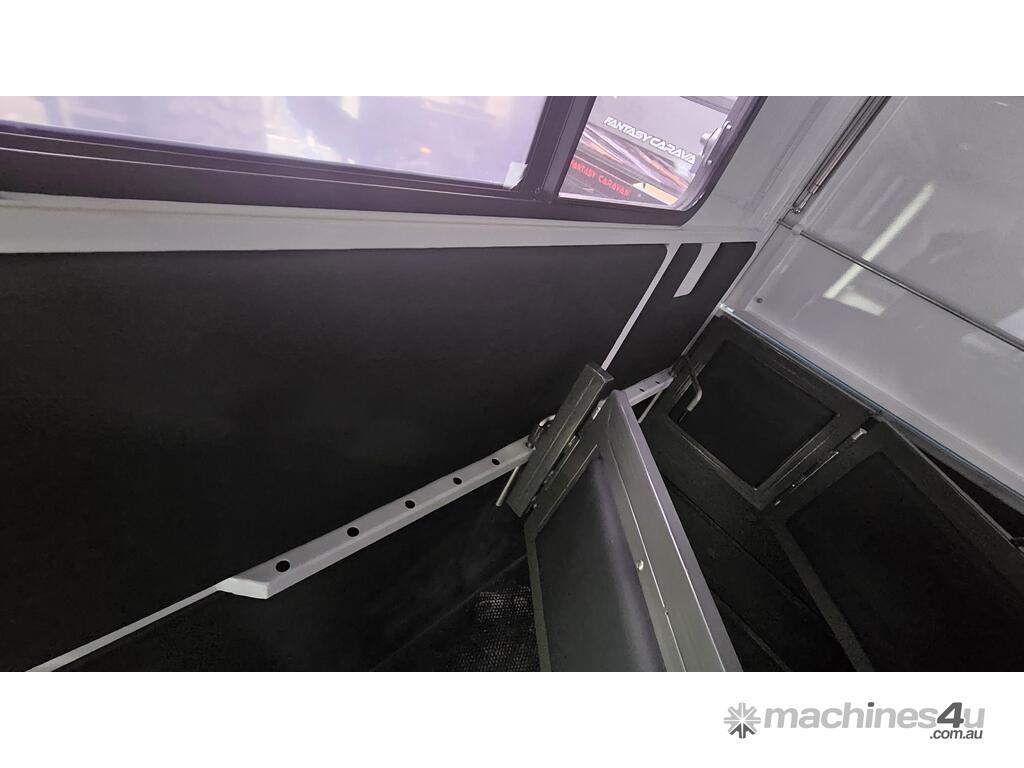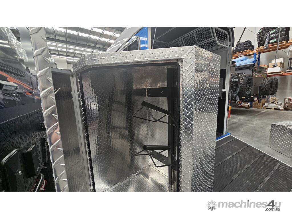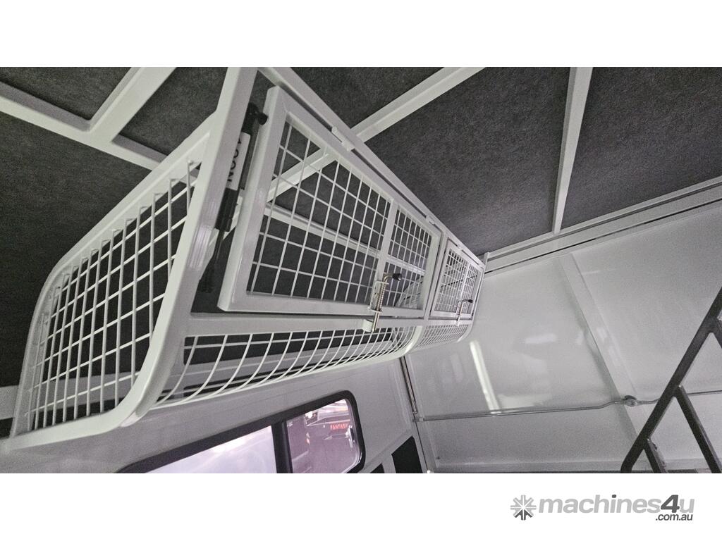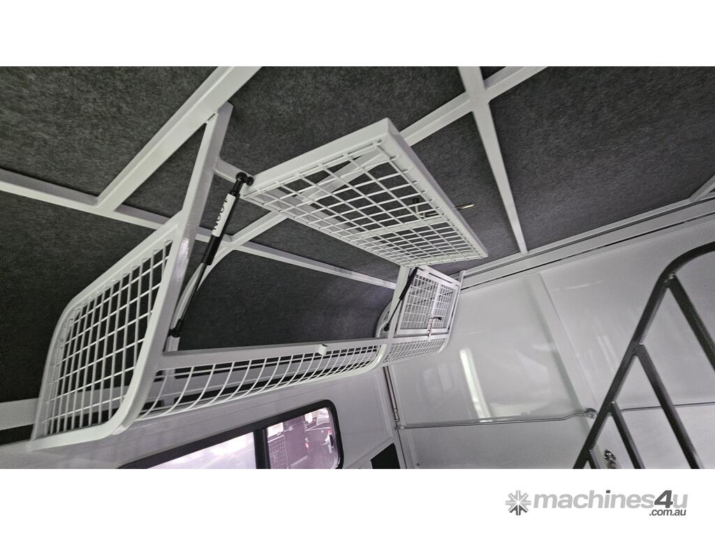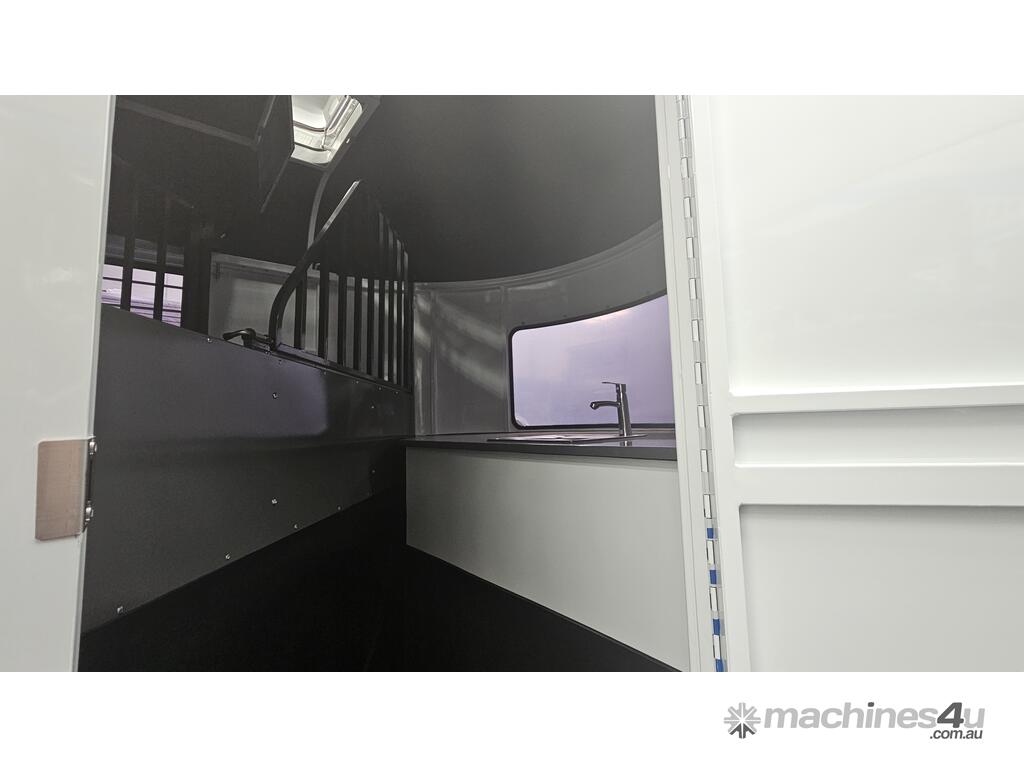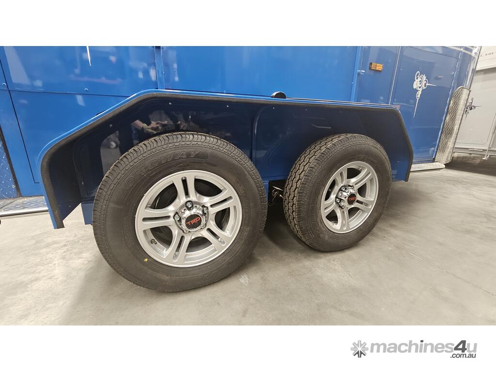 The 2 Horse Angle Load Float offers unmatched durability and safety, crafted with a galvanized steel chassis and reinforced with a heavy-duty checker plate. It features Australian Standard safety chains and a robust electric coupler with a 3500kg park brake, ensuring a secure journey for your equine friends. Its suspension system, equipped with rocker roller springs and solid axles, along with electric drum brakes, provides a smooth ride across all terrains. The body combines a fully welded steel frame with an FRP fiberglass roof for an ideal balance of strength and lightness, protected by a checker plate stone guard and metallic PPG paint for style and durability. Large tinted windows with fly screens offer excellent ventilation, while a pop-up vent keeps the interior comfortable. Security is enhanced with caravan-style triple lock doors, and a gas strut-assisted ramp door simplifies loading and unloading. This float is designed for those who demand safety, convenience, and style in horse transportation.