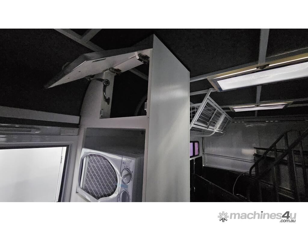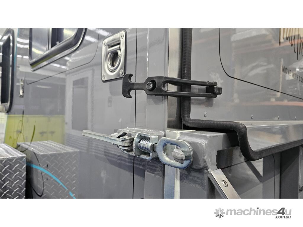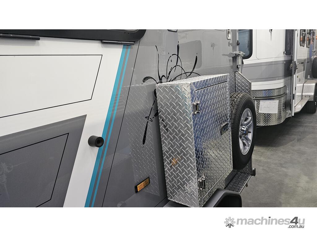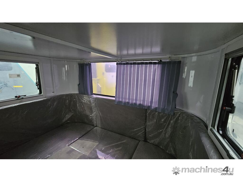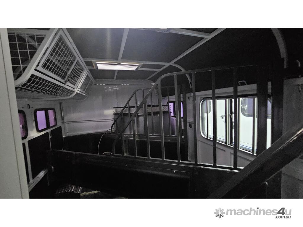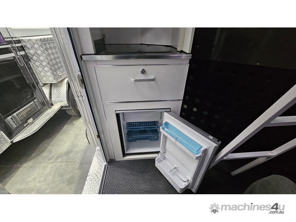 The 2 Horse Angle Load Float with Living Area features a sturdy exterior crafted to endure the rigors of travel. Its chassis is built from galvanized steel, offering strength and resilience. The suspension is engineered with tandem axle 2000kg capacity and heavy-duty rocker roller leaf springs, promising smooth and stable travel. Externally, the float is equipped with mechanical and electric drum brakes, ensuring your safety and control at all times. The body features custom metallic paint and a stone guard for a sleek, durable finish. External highlights include a wind-out awning for outdoor relaxation and protection, and a waterproof and rust-resistant horse yard for your horses’ safety and comfort. Convenience is further amplified with an external tack box, water filler with a safety lock, and a 240V power inlet, making the 2HAL Camper an ideal choice for those who demand durability without compromising on functionality and style.