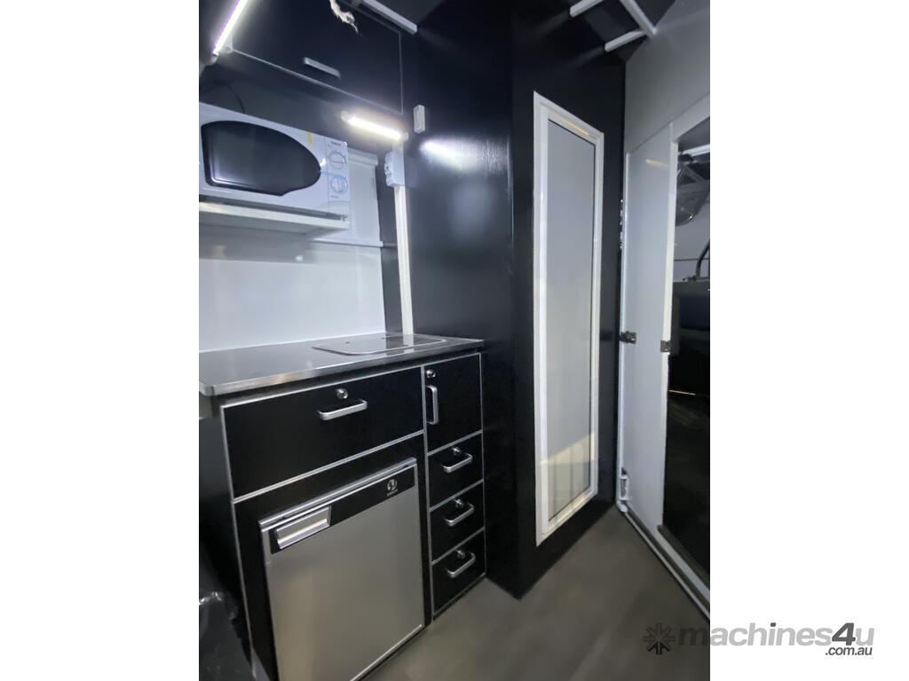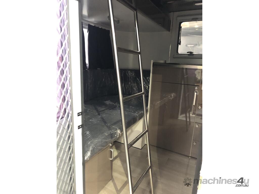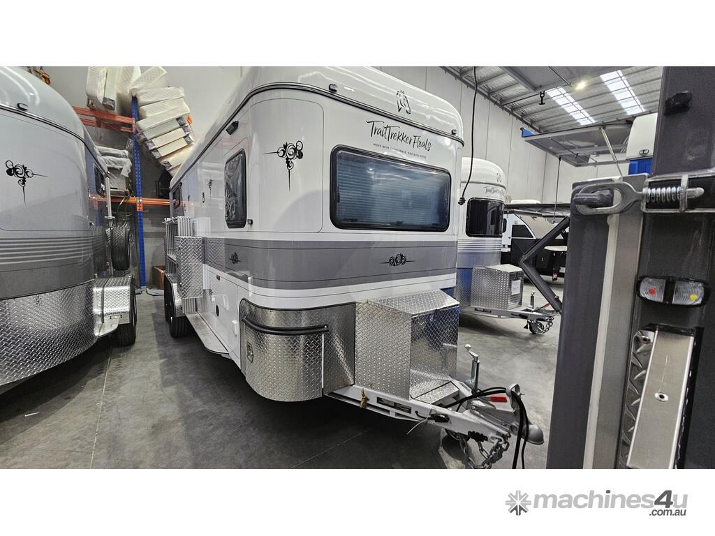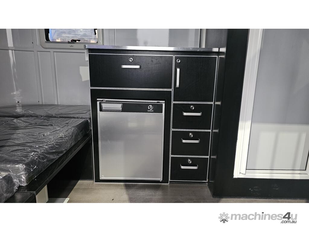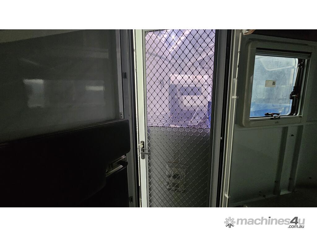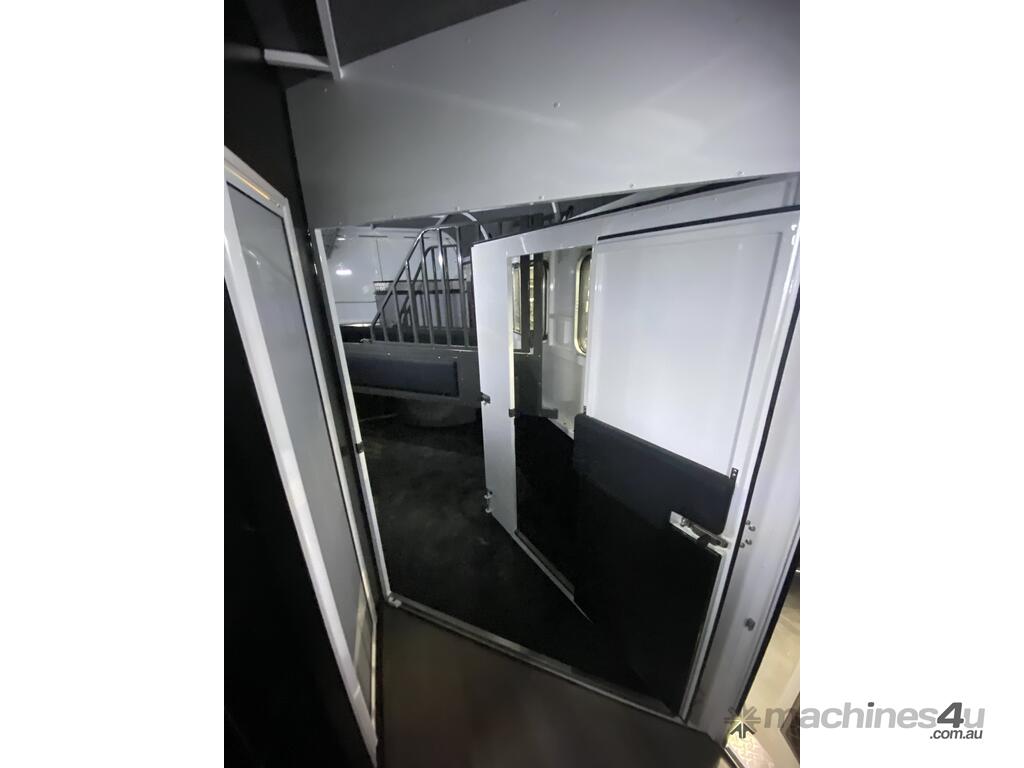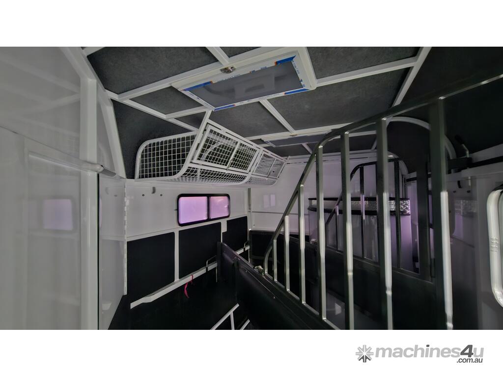 The 2 Horse Angle Load Float with Living Area features a sturdy exterior crafted to endure the rigors of travel. Its chassis is built from galvanized steel, offering strength and resilience. The suspension is engineered with tandem axle 2000kg capacity and heavy-duty rocker roller leaf springs, promising smooth and stable travel. Externally, the float is equipped with mechanical and electric drum brakes, ensuring your safety and control at all times. The body features custom metallic paint and a stone guard for a sleek, durable finish. External highlights include a wind-out awning for outdoor relaxation and protection, and a waterproof and rust-resistant horse yard for your horses’ safety and comfort. Convenience is further amplified with an external tack box, water filler with a safety lock, and a 240V power inlet, making the 2HAL Camper an ideal choice for those who demand durability without compromising on functionality and style.