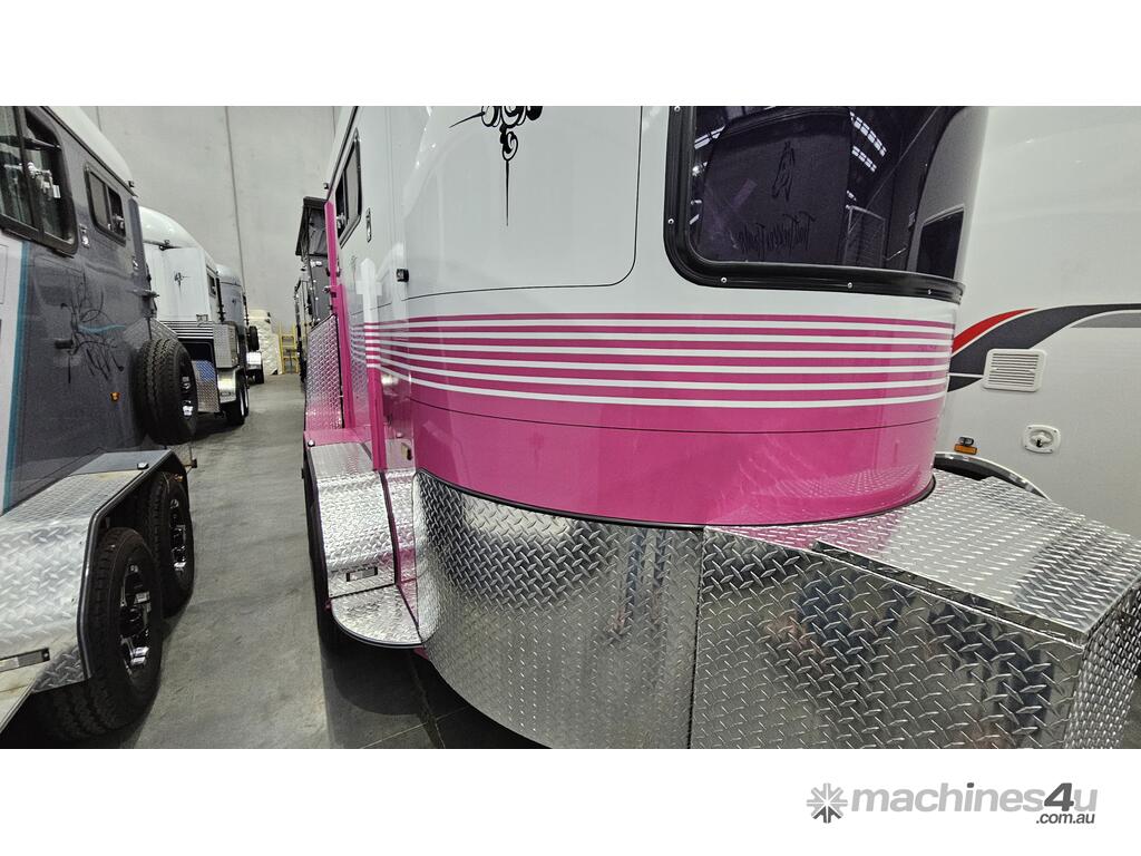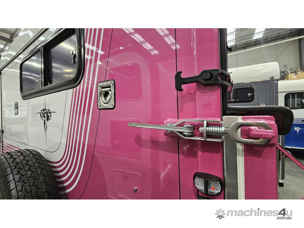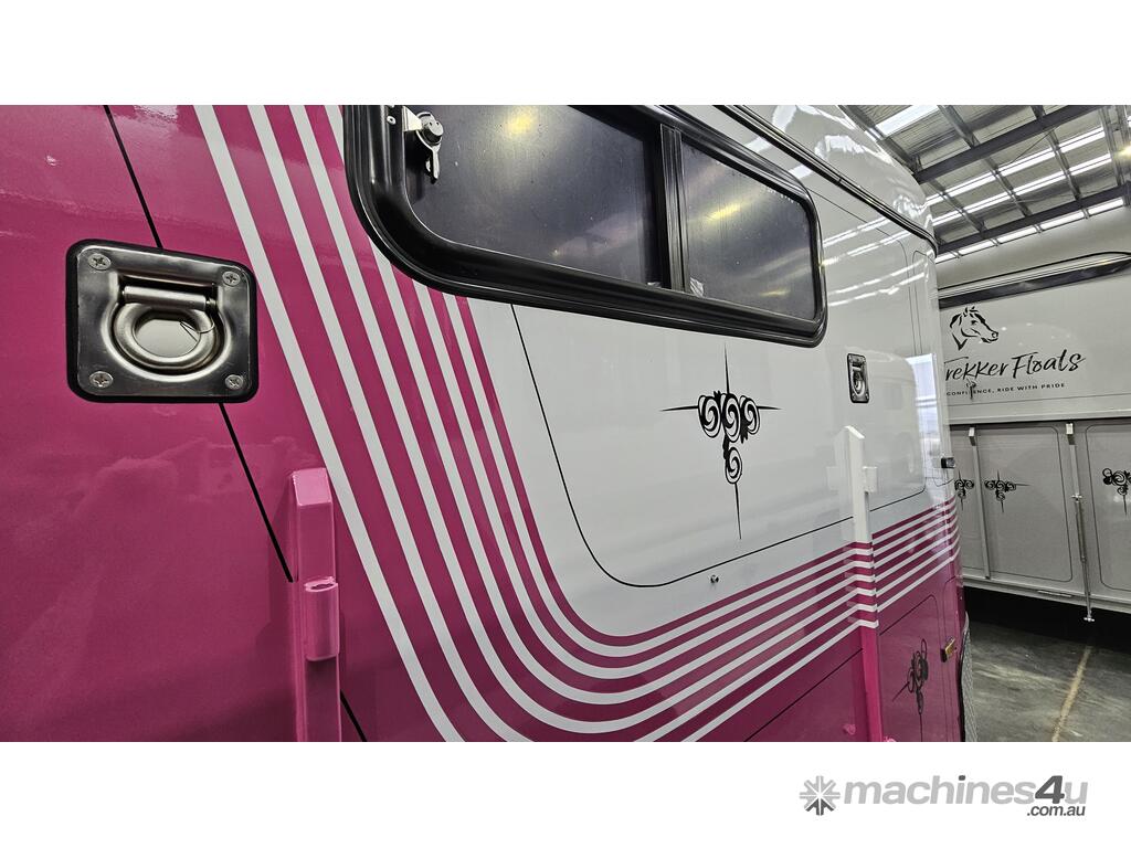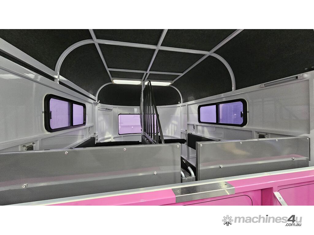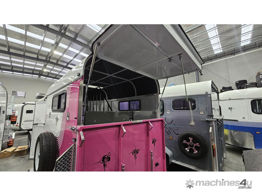 The 2 Horse Straight Load Float presents an interior designed with the comfort and safety of your horses at the forefront. Inside this float, your horses will enjoy the safety of reinforced aluminium flooring, which is complemented by an anti-slip rubber floor, ramp, and inner side panel, providing a secure footing during travel. Adjustable bays with removable stallion bars allow for a customizable space, accommodating horses of various sizes. Padded horse protection frames add an extra layer of safety and comfort. For storage convenience, there’s an overhead large rug box and a front tack box with adjustable saddle racks and bridle hooks, keeping all your gear organized. The swing-out saddle box, with a height of 1500mm, offers practical storage for three saddles. All these features are illuminated by downlights, reading lights, and door lights, creating a serene and safe environment for your horses.