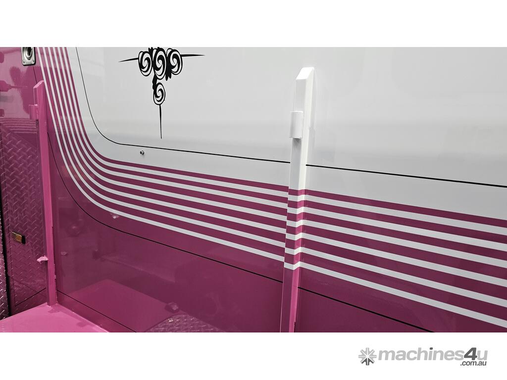The 2 Horse Straight Load Float is an epitome of functional elegance and durability on the outside. Its chassis is crafted from robust RHS galvanized steel, and it rides on solid 50mm x 50mm square tandem axle 2000kg suspension, ensuring stability on the road. The suspension system is enhanced by a 60mm/7mm heavy-duty rocker roller leaf spring, with electric drum brakes providing reliable stopping power. The mechanical handbrake and mechanical override brake add layers of safety. The float stands on commercial light truck tyres with 14” alloy wheels and embossed mud flaps, combining practicality with style. The body is finished with a customizable metallic PPG paint and a fully welded RHS galvanized steel frame for lasting endurance. Special molded FRP fibre-reinforced polymer fiberglass roof and checker plate stone guard protect the float from the elements, while the horse yards are securely ringed with anti-rust compression and T locks. For convenience, the float features a waterproof wind-out cassette awning, providing shelter during outdoor activities.