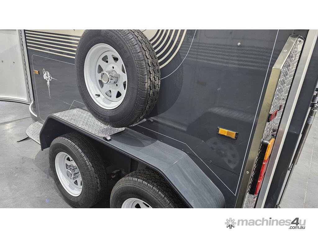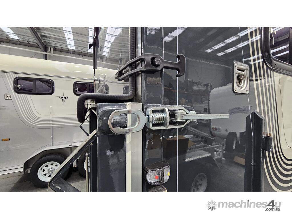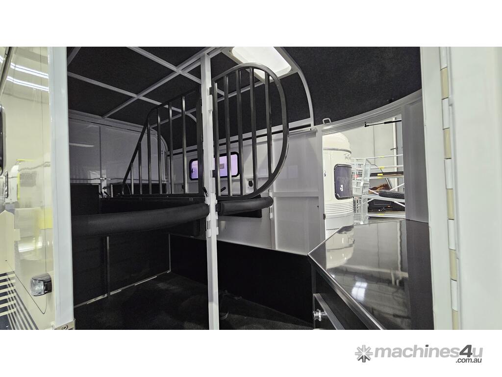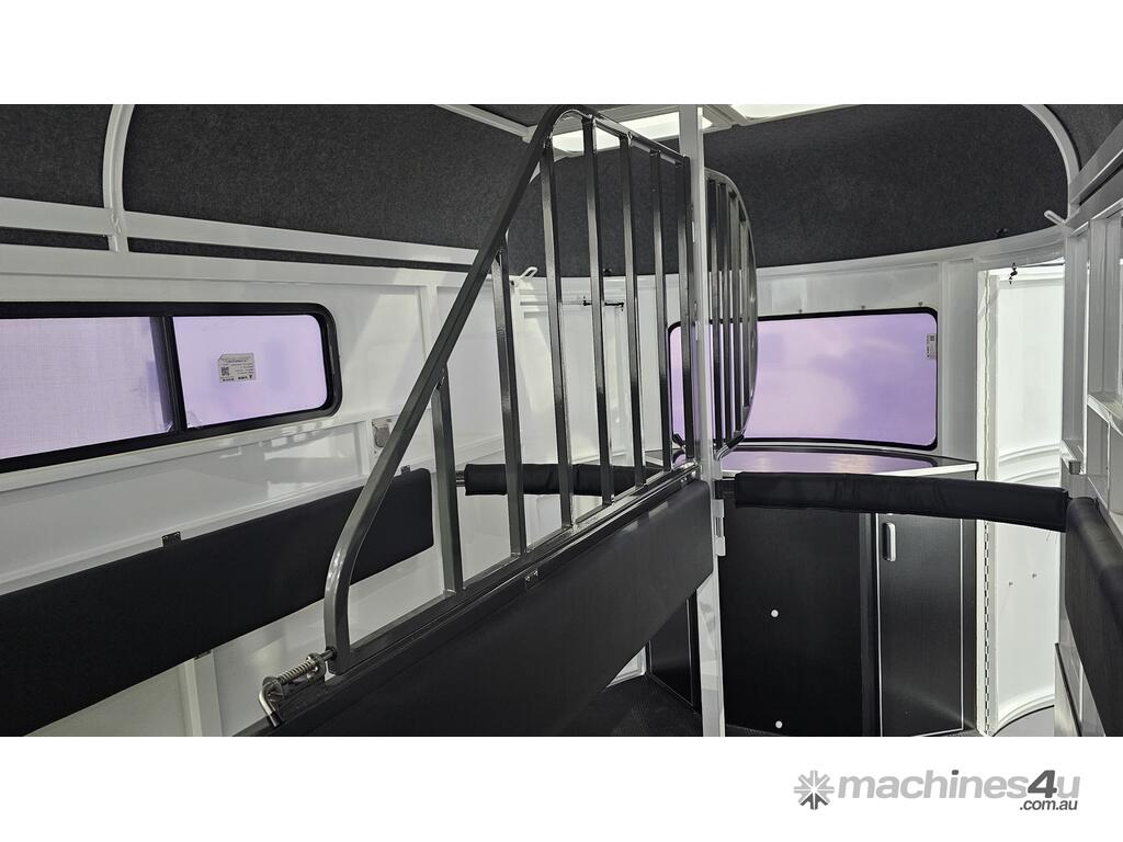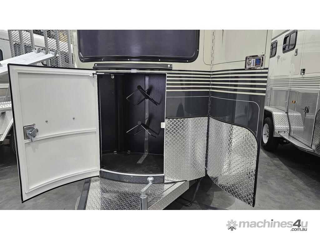 The 2 Horse Straight Load Float presents an interior designed with the comfort and safety of your horses at the forefront. Inside this float, your horses will enjoy the safety of reinforced aluminium flooring, which is complemented by an anti-slip rubber floor, ramp, and inner side panel, providing a secure footing during travel. Adjustable bays with removable stallion bars allow for a customizable space, accommodating horses of various sizes. Padded horse protection frames add an extra layer of safety and comfort. For storage convenience, there’s an overhead large rug box and a front tack box with adjustable saddle racks and bridle hooks, keeping all your gear organized. The swing-out saddle box, with a height of 1500mm, offers practical storage for three saddles. All these features are illuminated by downlights, reading lights, and door lights, creating a serene and safe environment for your horses.