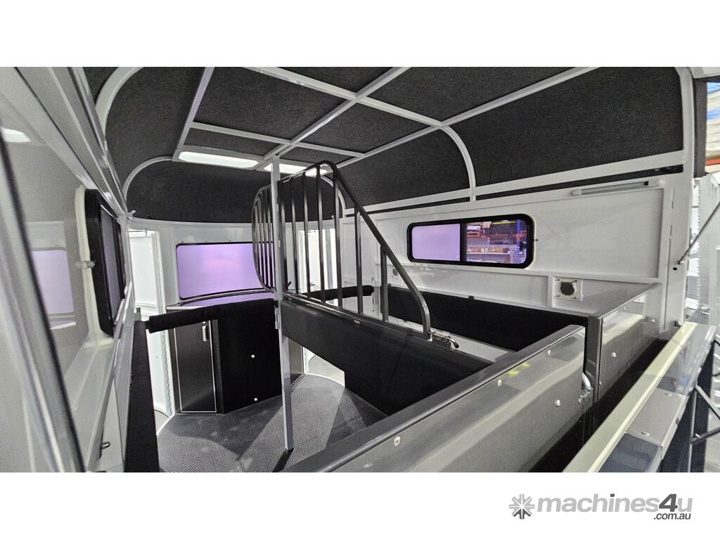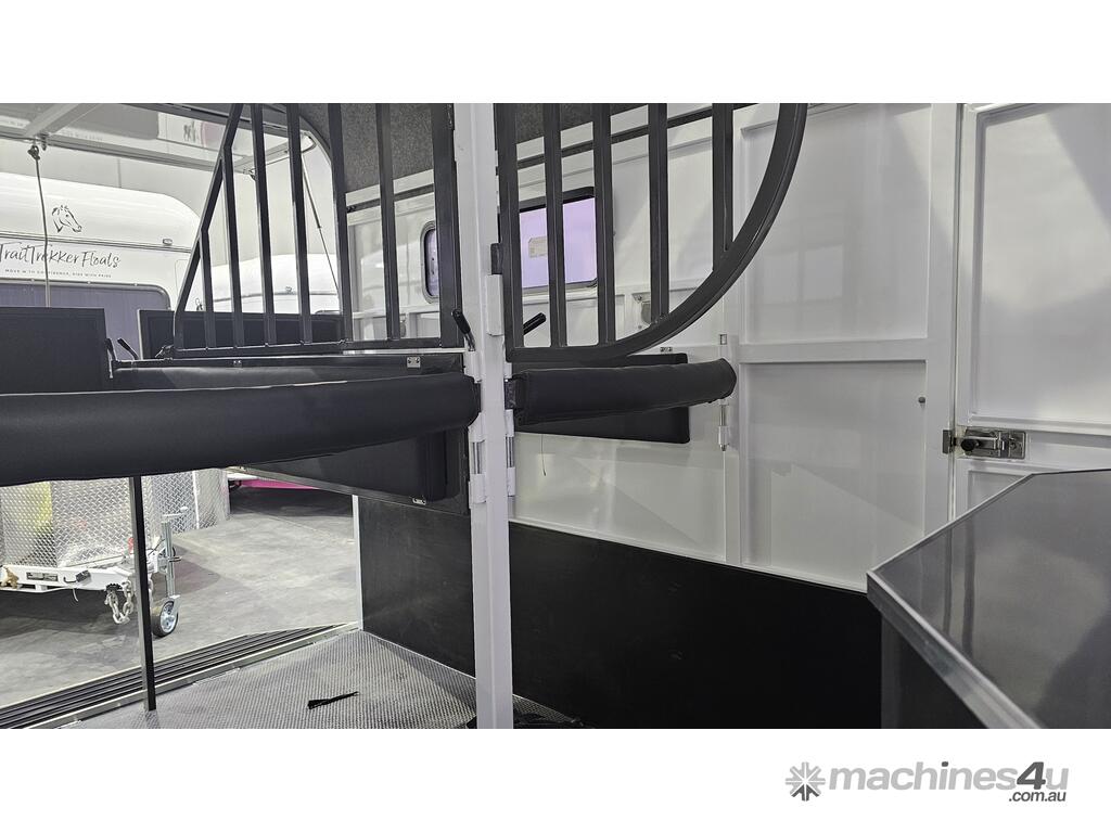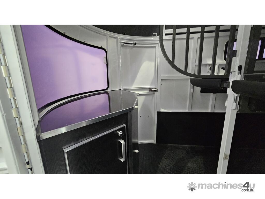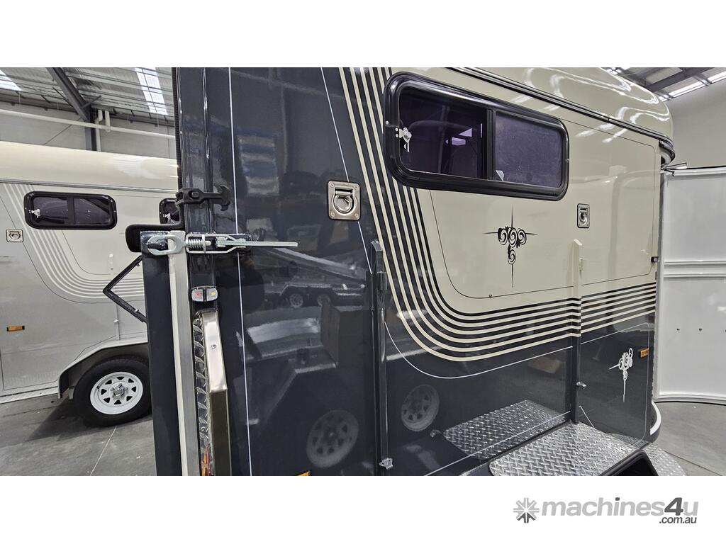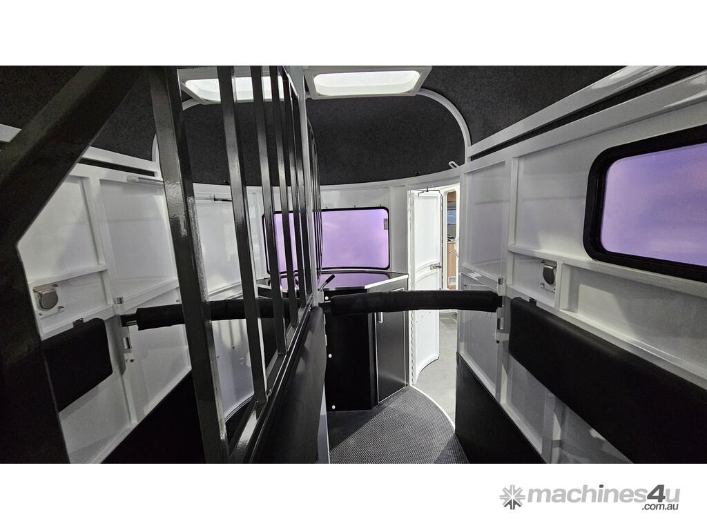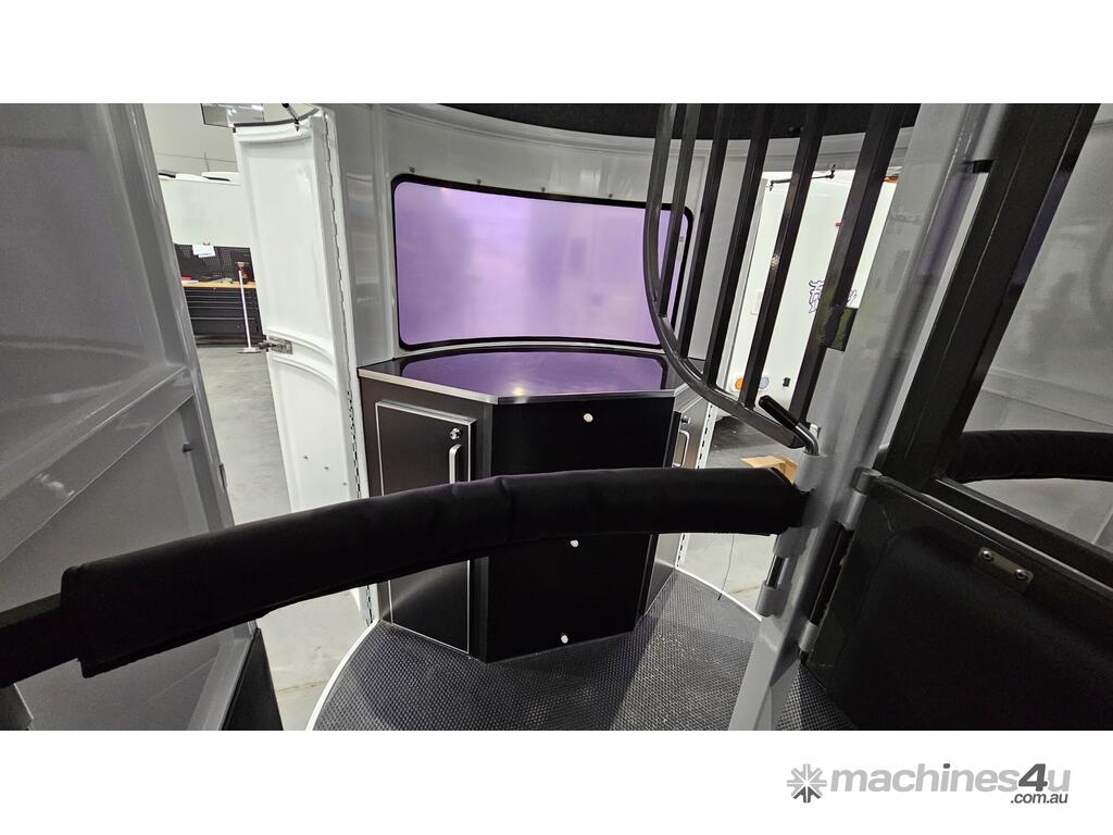 The 2 Horse Straight Load Float presents an interior designed with the comfort and safety of your horses at the forefront. Inside this float, your horses will enjoy the safety of reinforced aluminium flooring, which is complemented by an anti-slip rubber floor, ramp, and inner side panel, providing a secure footing during travel. Adjustable bays with removable stallion bars allow for a customizable space, accommodating horses of various sizes. Padded horse protection frames add an extra layer of safety and comfort. For storage convenience, there’s an overhead large rug box and a front tack box with adjustable saddle racks and bridle hooks, keeping all your gear organized. The swing-out saddle box, with a height of 1500mm, offers practical storage for three saddles. All these features are illuminated by downlights, reading lights, and door lights, creating a serene and safe environment for your horses.