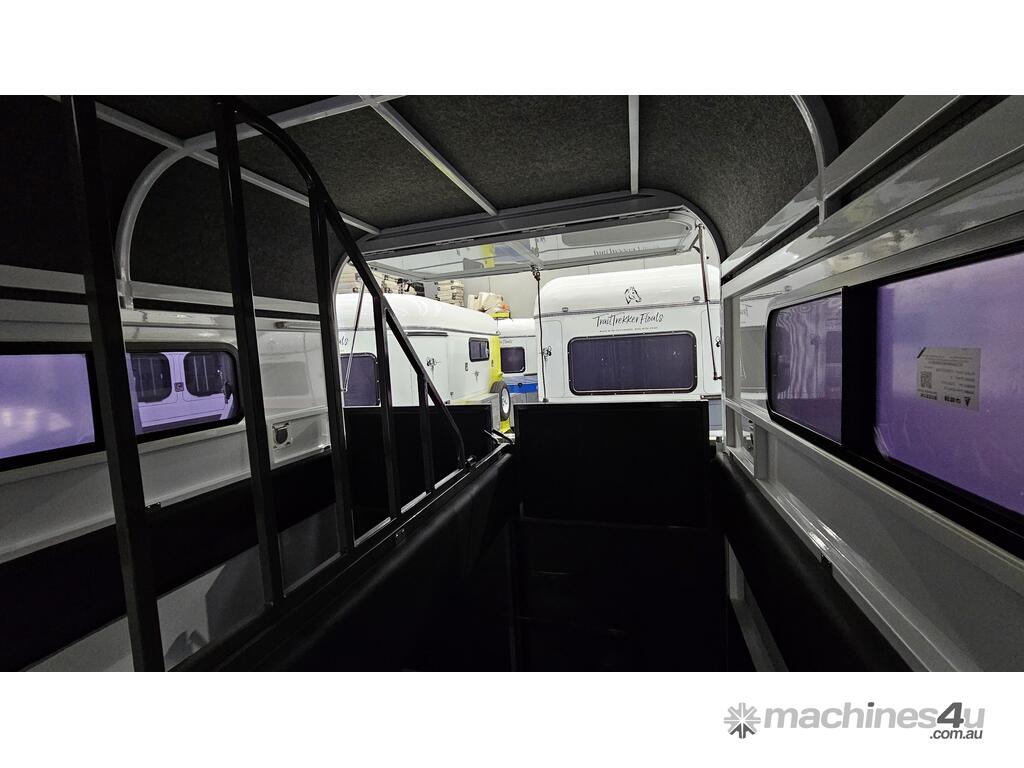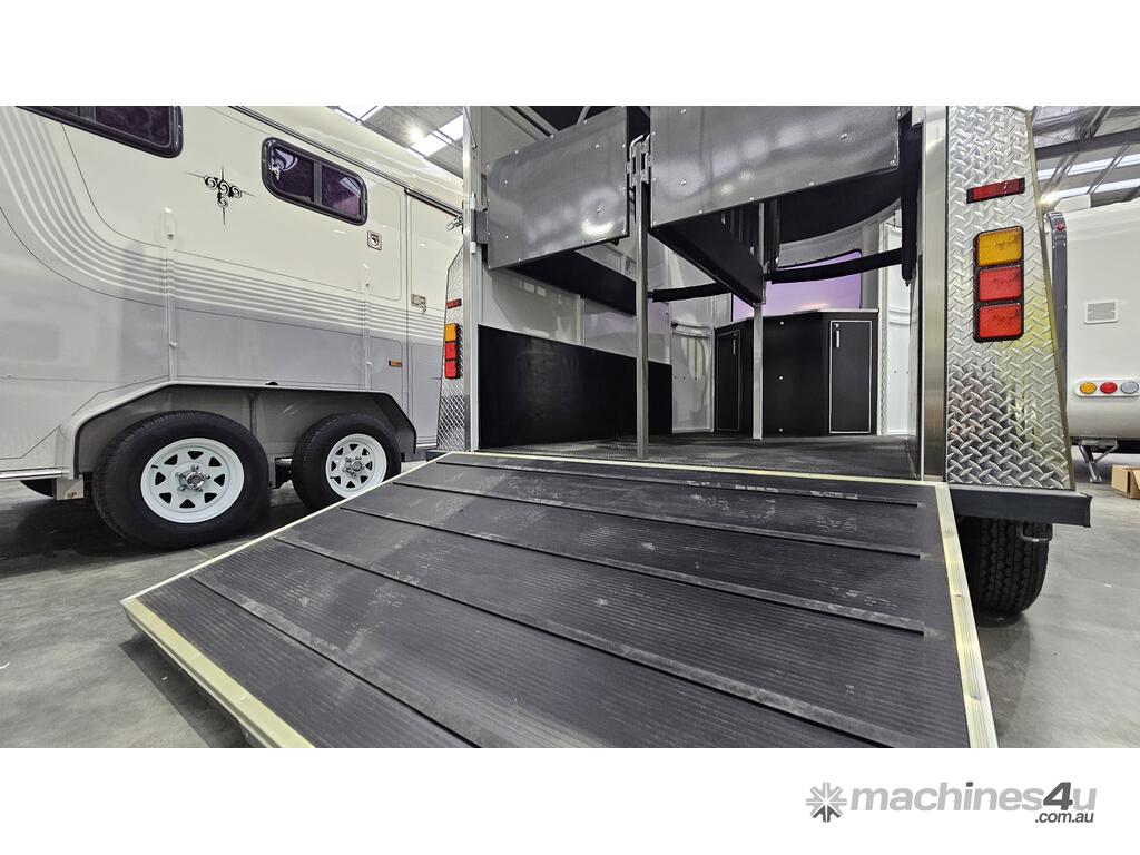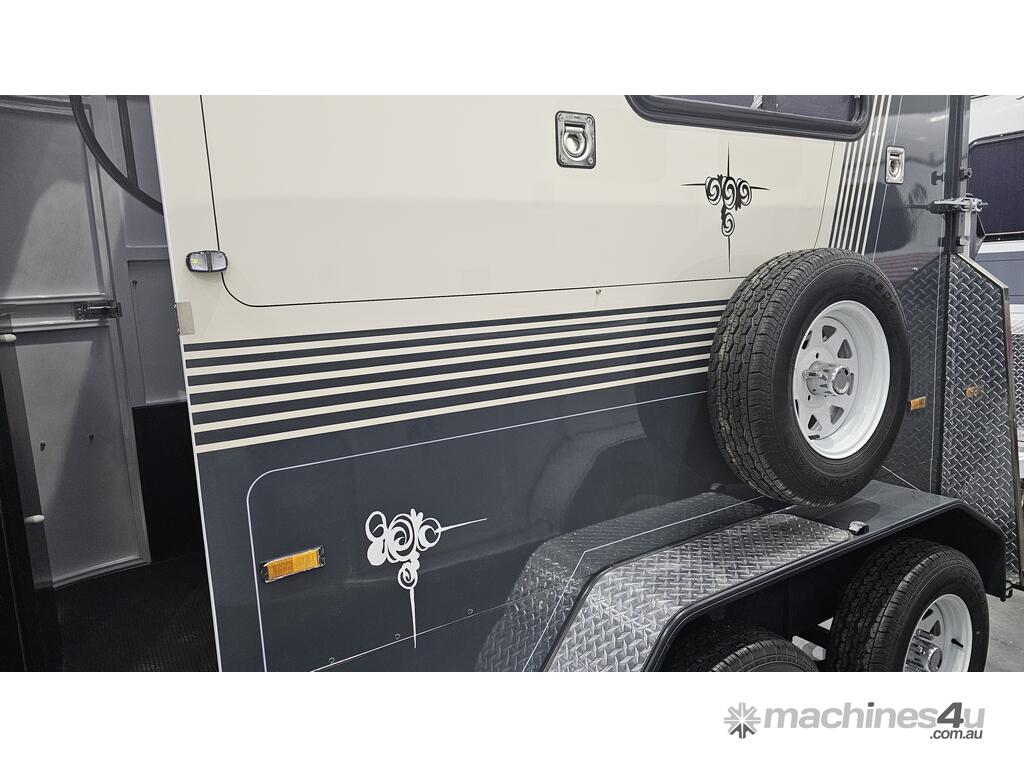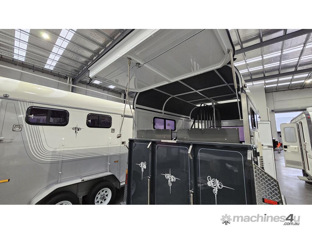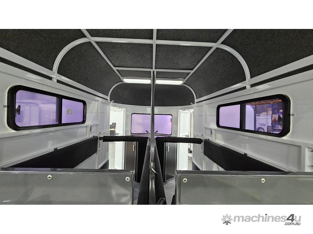 The 2 Horse Straight Load Float presents an interior designed with the comfort and safety of your horses at the forefront. Inside this float, your horses will enjoy the safety of reinforced aluminium flooring, which is complemented by an anti-slip rubber floor, ramp, and inner side panel, providing a secure footing during travel. Adjustable bays with removable stallion bars allow for a customizable space, accommodating horses of various sizes. Padded horse protection frames add an extra layer of safety and comfort. For storage convenience, there’s an overhead large rug box and a front tack box with adjustable saddle racks and bridle hooks, keeping all your gear organized. The swing-out saddle box, with a height of 1500mm, offers practical storage for three saddles. All these features are illuminated by downlights, reading lights, and door lights, creating a serene and safe environment for your horses.