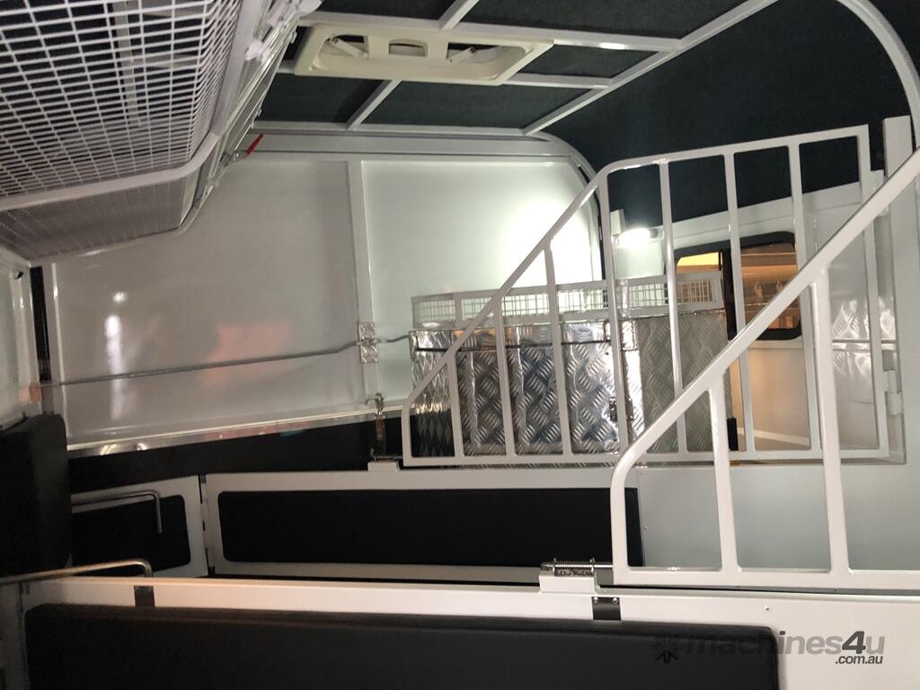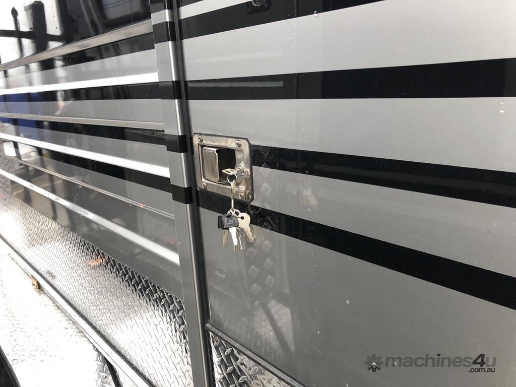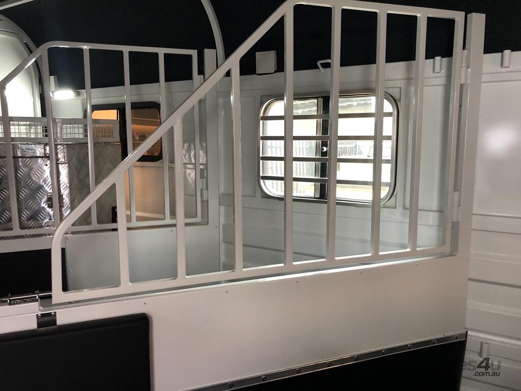 The 2 Horse Straight Load Float presents an interior designed with the comfort and safety of your horses at the forefront. Inside this float, your horses will enjoy the safety of reinforced aluminium flooring, which is complemented by an anti-slip rubber floor, ramp, and inner side panel, providing a secure footing during travel. Adjustable bays with removable stallion bars allow for a customizable space, accommodating horses of various sizes. Padded horse protection frames add an extra layer of safety and comfort. For storage convenience, there’s an overhead large rug box and a front tack box with adjustable saddle racks and bridle hooks, keeping all your gear organized. The swing-out saddle box, with a height of 1500mm, offers practical storage for three saddles. All these features are illuminated by downlights, reading lights, and door lights, creating a serene and safe environment for your horses.