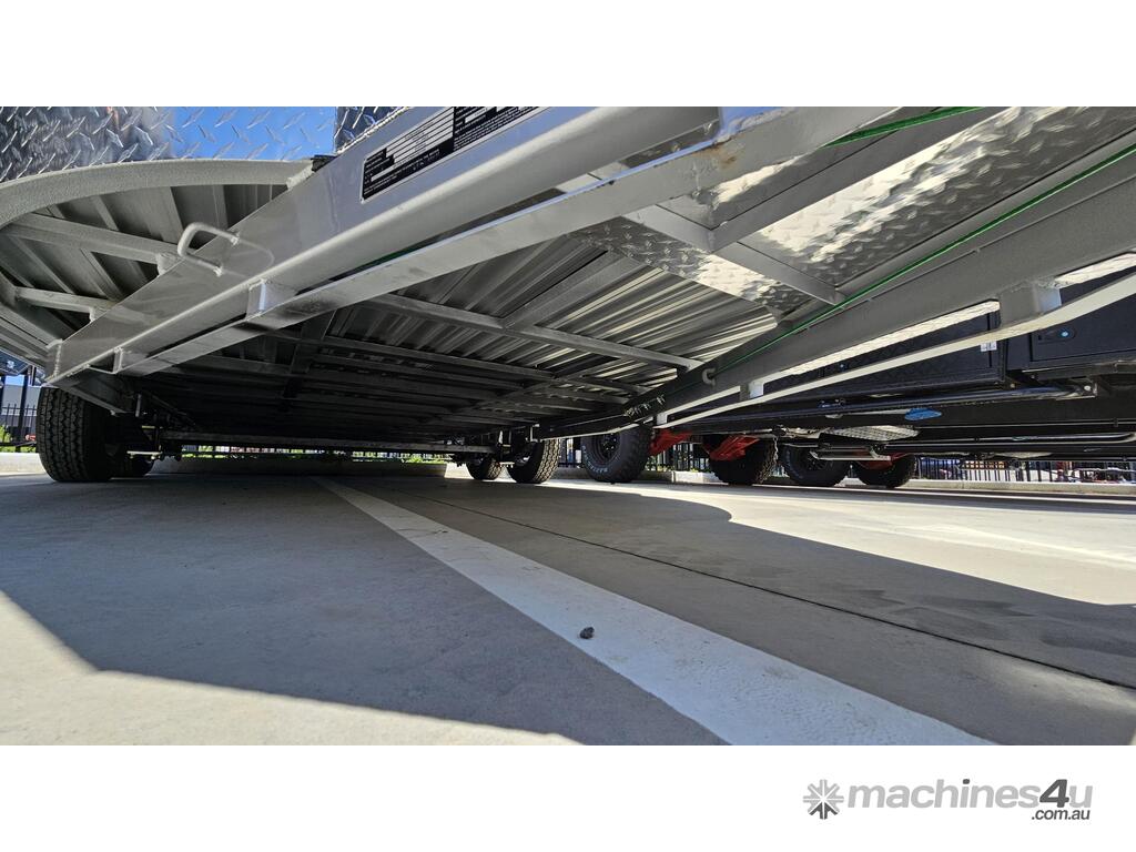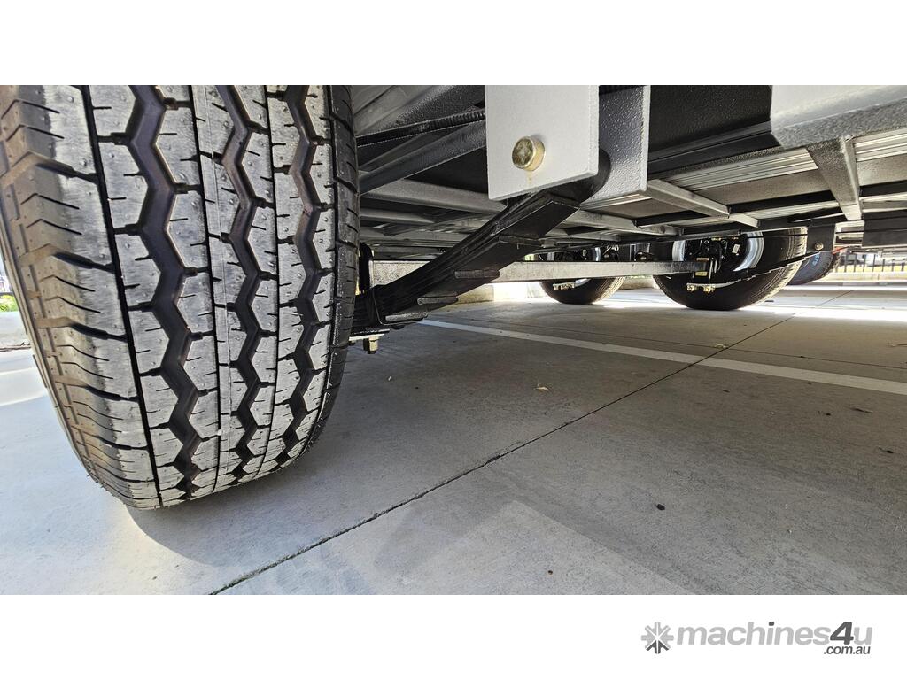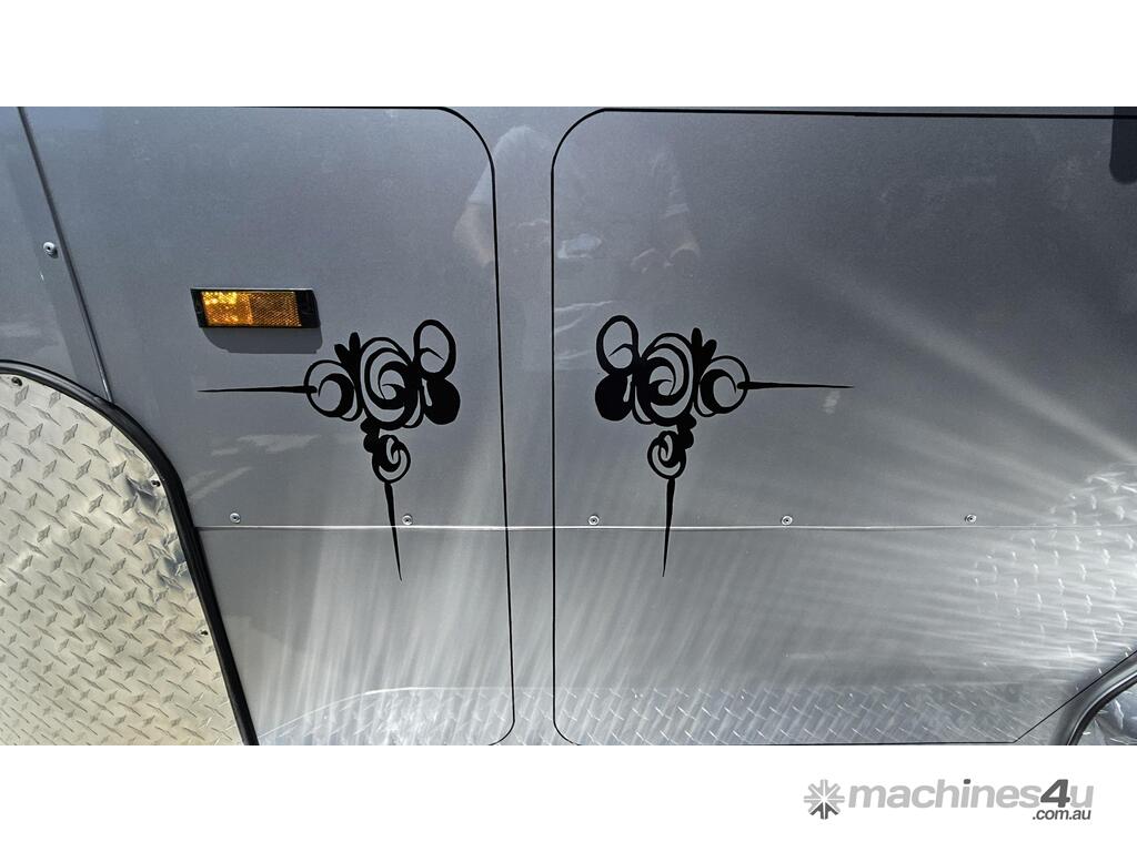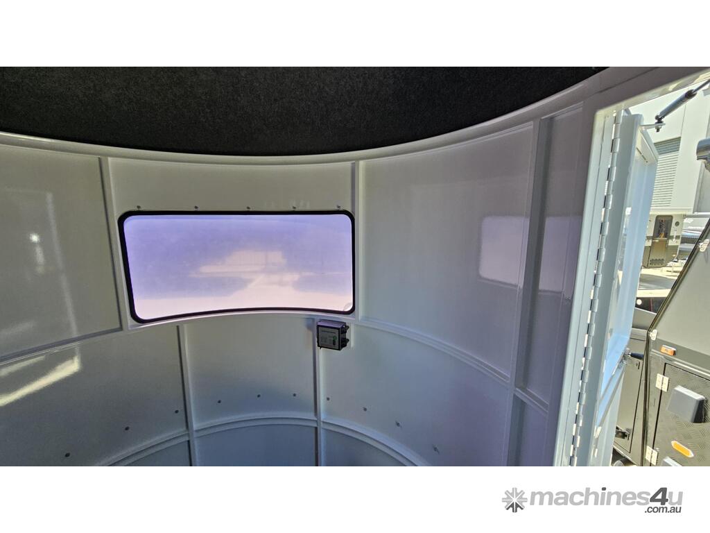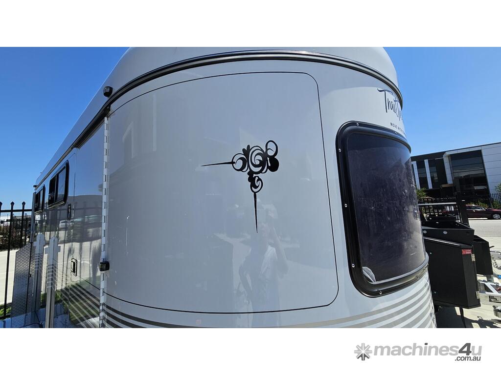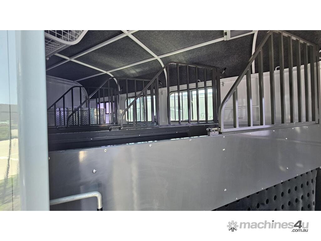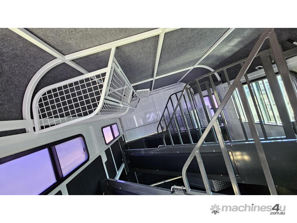 Inside the 3 Horse Angle Load Float, your horses are greeted with a harmonious blend of luxury and tranquility. The spacious interior is designed to accommodate three horses, providing a secure and serene travel environment. It’s outfitted with adjustable bays featuring removable stallion bars for adaptable spacing, and padded protection frames for added safety. The horses’ comfort is further enhanced by anti-slip rubber flooring, ensuring stability during the journey. For the equestrian’s convenience, there’s a large front tack box with adjustable saddle racks and bridle hooks, as well as an oversized rug box for additional storage. The living area is separated by a full roller dividing wall, complete with plush seating that converts into beds, and a king-size mattress for restful nights. Modern amenities such as a premium kitchen, wardrobe, hot water shower, and a plumbed water system round out the interior offerings, creating a home away from home on the road.