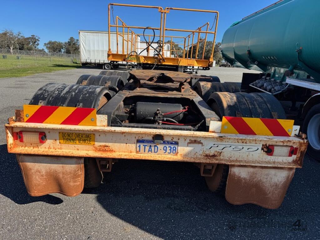 Trailer A Trailer Flat Top Tri Springs 1991 6m tray Twist lock 3.5 inch pin and turntable 1TAD938 SN1788. Spider rims. Spring suspension.