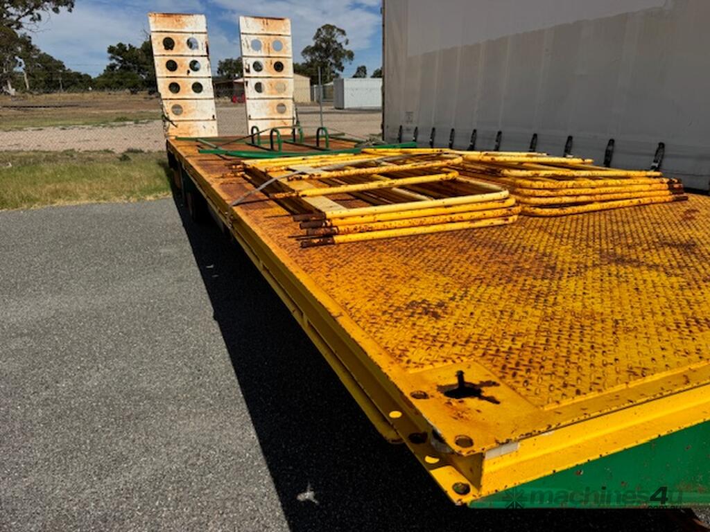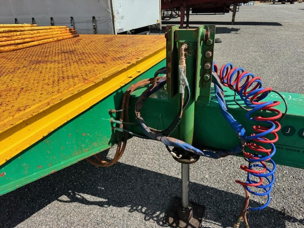 Trailer TAG Trailer Joe Crossley 9.5m tray Bogie Elect hydraulics 2014 1TPA748 SN1821. Hydraulic ramps and height leg with remote electric bogie. 9.5m tray. Bartlet hitch gates.